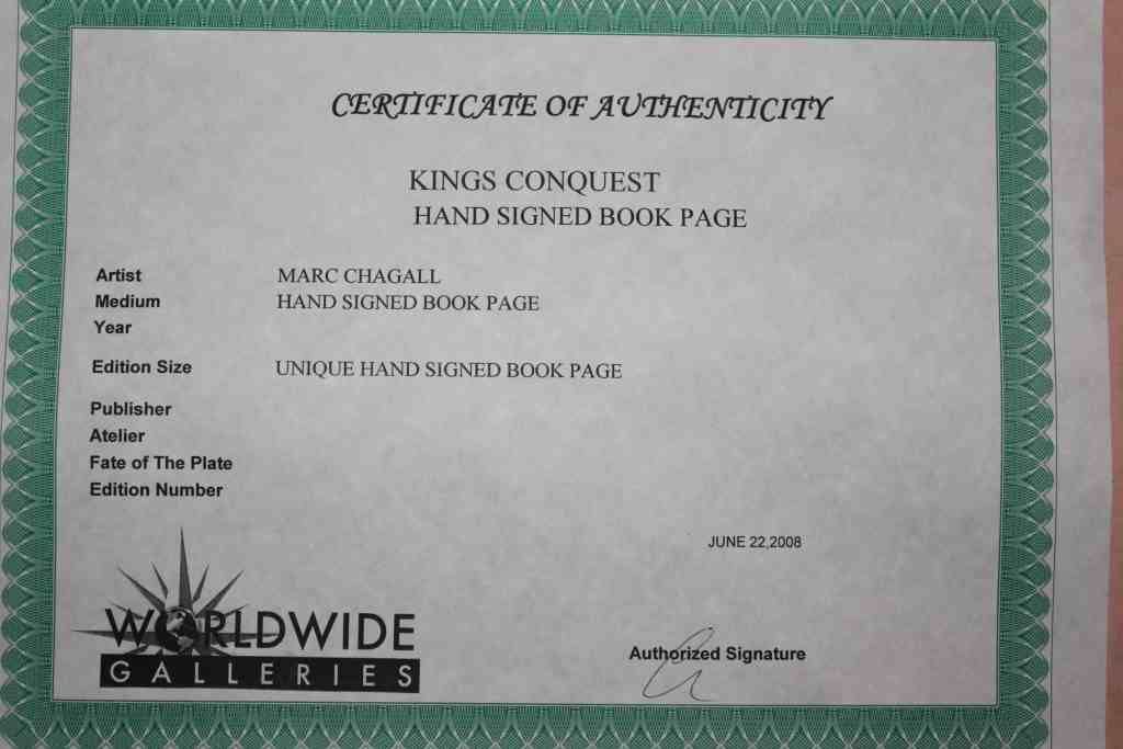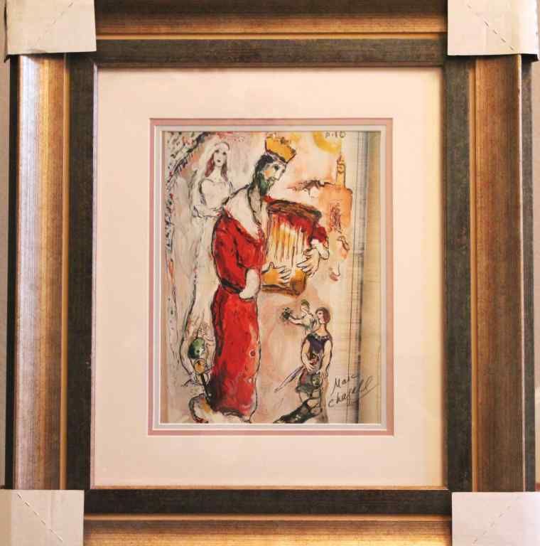Marc Chagall - "Kings Conquest" - Hand Signed By The Artist - Book Plate - Professionally Framed And Matted - Mint Condition - Image Size 12.5" X 9.5" - Framed Size 25.5" X 22.5" - Comes With Certificate Of Authenticity