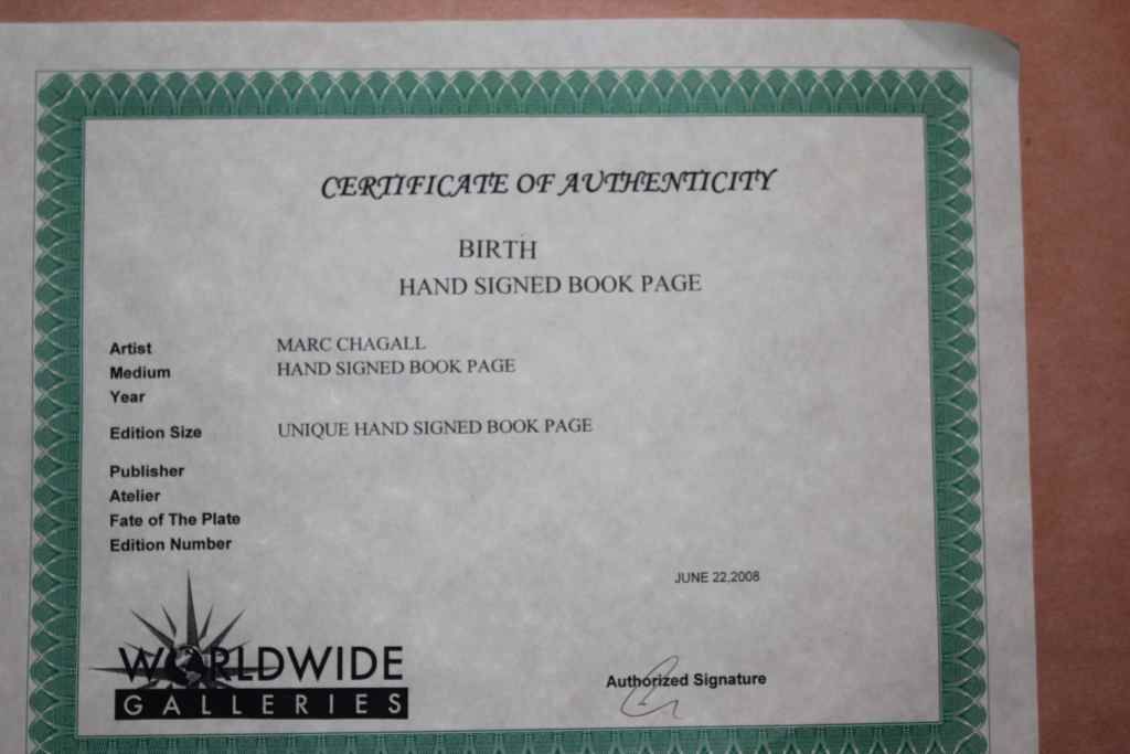Marc Chagall - "Birth" - Hand Signed By The Artist - Book Plate - Professionally Framed And Matted - Mint Condition - Image Size 11.25" X 8" - Framed Size 22.5" X 19.5" - Comes With Certificate Of Authenticity