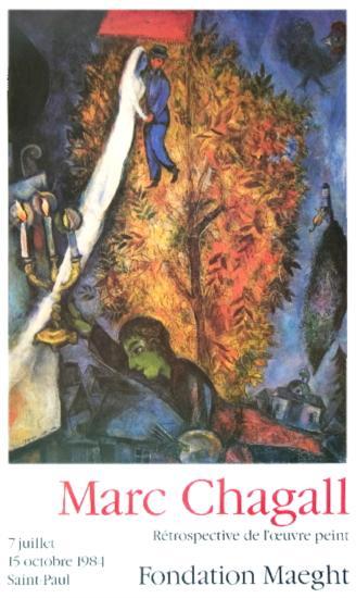 Notes: Original exhibition poster created by Chagall for an exhibition held at Galerie Maeght in Paris. The poster measures 28 x 17 inches.