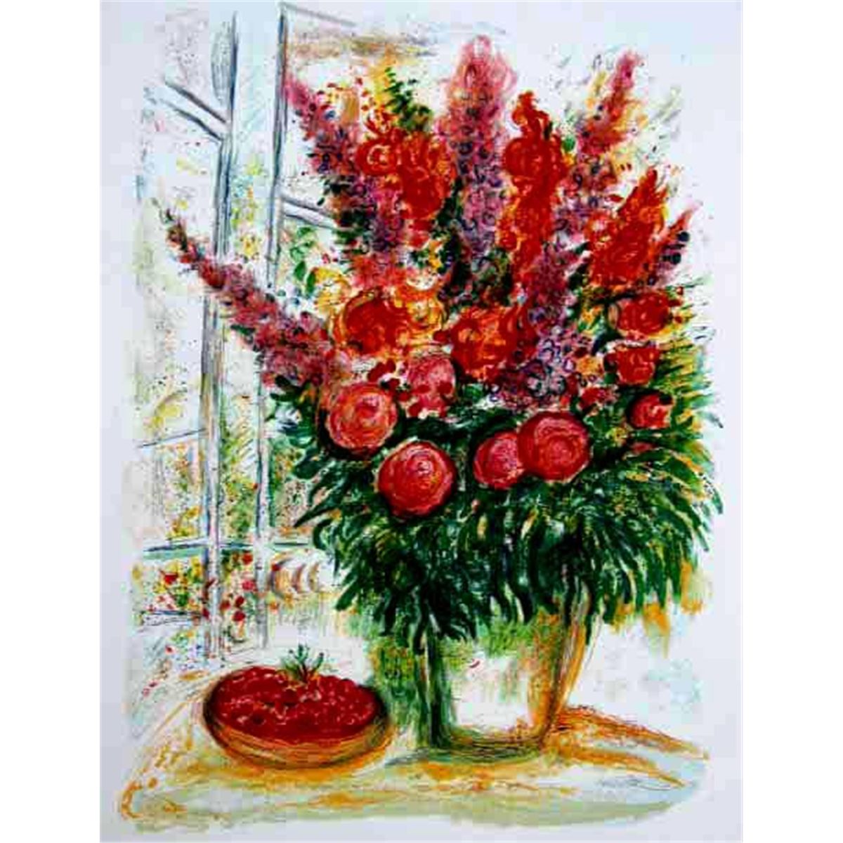 Marc Chagall "Bouquet With Bowl Of Cherries" - Limited Edition Lithograph On Quality Archival Paper - Numbered In Pencil - Signed In The Plate - Professionally Framed And Matted - Appx 32" X 22" - Mint - Comes With COA