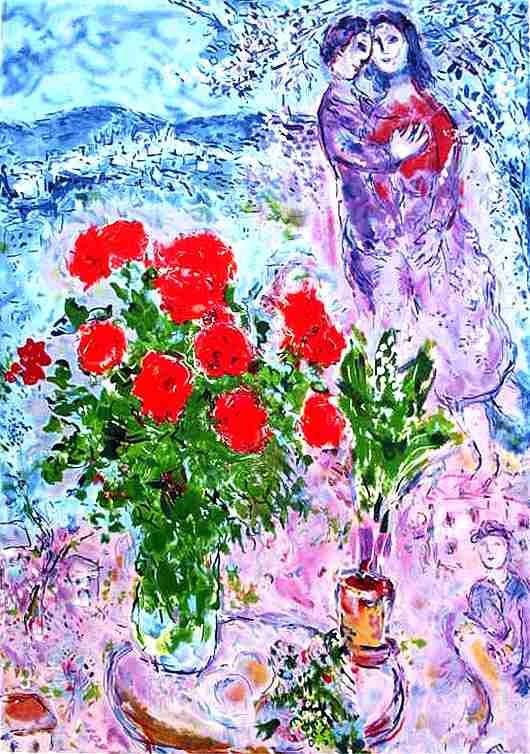 Marc Chagall "Red Bouquet With Lovers" - Limited Edition Lithograph On Quality Archival Paper - Numbered In Pencil - Signed In The Plate - Professionally Framed And Matted - Appx 32" X 22" - Mint - Comes With COA