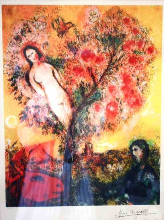 Marc Chagall - "Tree Above Village"- Ltd Edition Lithograph - Professionally Framed And Matted - Mint Condition - Comes With Coa - Signed In The Plate - Framed Size Appx 32x27