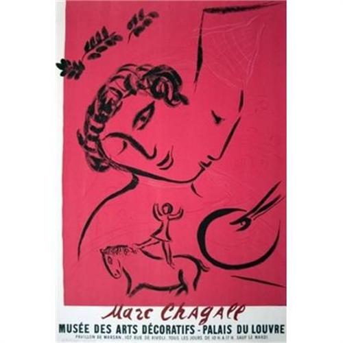 Lithograph By Mourlot 20x30 inches Very little handling,High Quality Paper 1 The Painter in Rose/The Painter in Pink Marc Chagall. Musee des Arts Decoratifs, Palais du Louvre, 1959. Colour lithograph, 66.5 x 50.5cm [the poster 75 x 51.2cm]. Retrospective exhibition. Printed by Mourlot, in an edition of 1,500. Sorlier #34. Mourlot #224