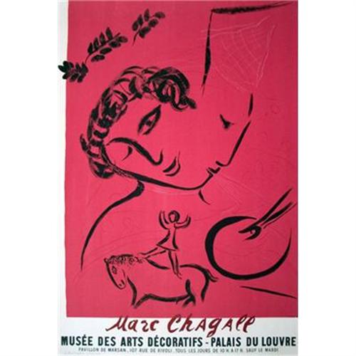Additional Notes:The Painter in Rose/The Painter in PinkMarc Chagall. Musee des Arts Decoratifs, Palais du Louvre, 1959. Colour lithograph, 66.5 x 50.5cm [the poster 75 x 51.2cm].Retrospective exhibition. Printed by Mourlot, in an edition of 1,500. Sorlier #34. Mourlot #224