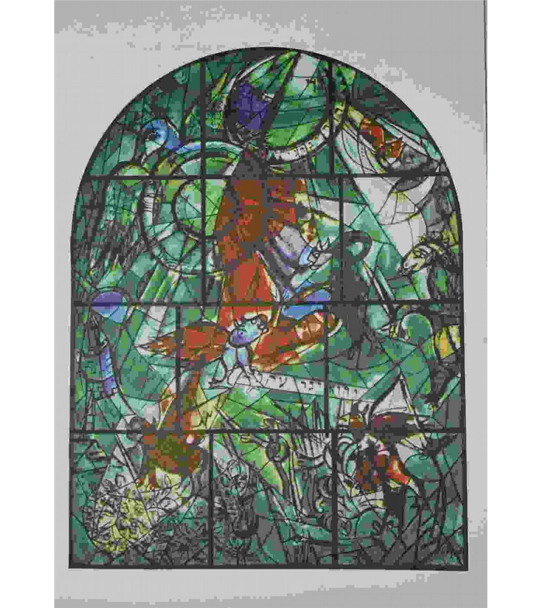 Marc Chagall "The Tribe of Gad" - Printed in Germany by Herder in 1964 on Wove Paper - Vintage German Edition Gravure of the Famous Jerusalem Window Created in 1962 for the Synagogue at the Hadassah-Hebrew University Medical Center in the Judaean Hills - 12 Windows were Created, One for Each of the 12 Tribes of Israel - Image Size Appx. 8" x 6" - Professionally Framed and Matted