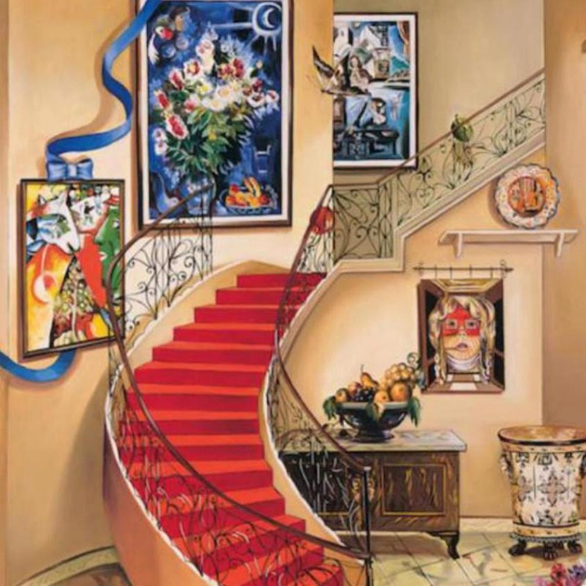 "Chagall View" is a limited edition Giclee on Canvas by Alexander Astahov. The piece is numbered, hand siged by the artist, and come with a letter of authenticity. Measures approximately 24" x 36".
