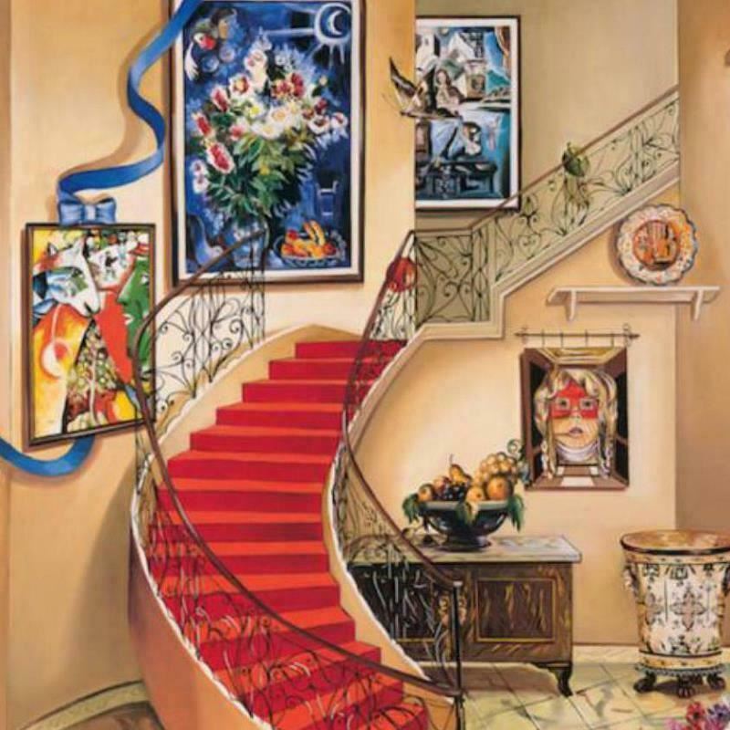 "Chagall View" is a limited edition Giclee on Canvas by Alexander Astahov. The piece is numbered, hand signed by the artist, and come with a letter of authenticity. Measures approximately 24" x 36".