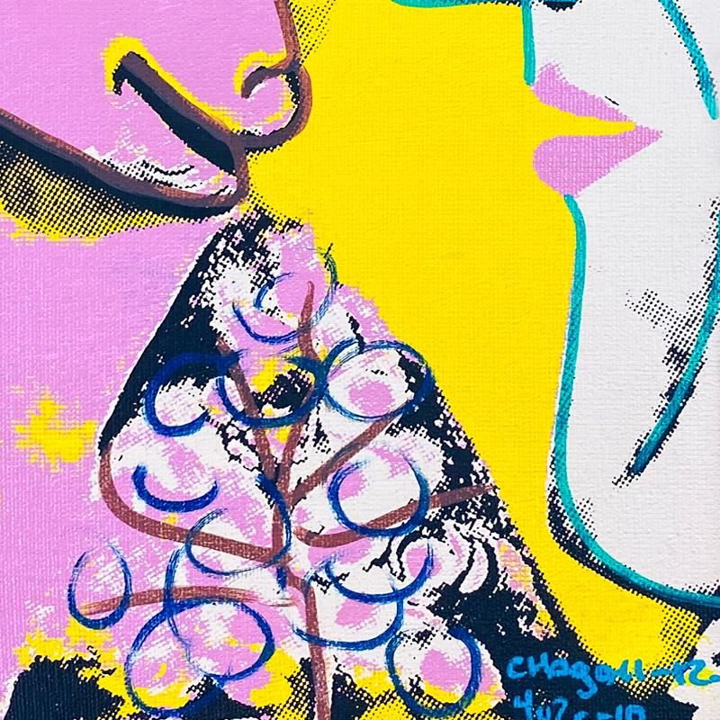 "Chagall and the Village" is a one-of-a-kind hand-pulled mixed media silkscreen on canvas by Ringo (Daniel Funes) - protege of Andy Warhol's apprentice, Steve Kaufman.This piece is hand signed by the artist and Steve Kaufman (1960-2010). This piece comes custom framed. Includes Letter of Authenticity. Measures approx. 16.5" x 13" (frame), 13.5" x 10" (image). This item requires special handling and may have a longer than usual turnaround.