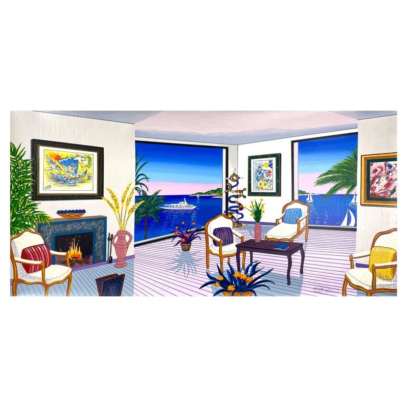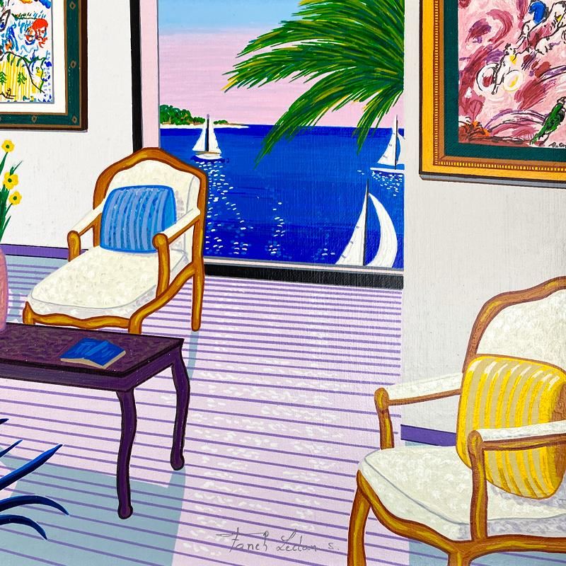 "Chagall in the South" is a limited edition serigraph on canvas by Fanch AP numbered inverso and hand signed by the artist. Includes Letter of Authenticity. Measures approx. 14" x 28" (image). This proof came from Fanch Ledans personal collection. It may have some slight imperfections in the image and border but its overall condition was inspected and approved by him.