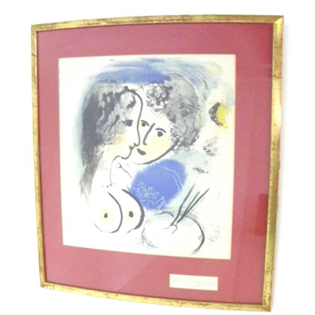 Marc Chagall (1897-1985 Russia/France) Portrait of the Artist and a Nude, colored lithograph, 20" x 18" sight size, signed in blue pencil lower right, framed 29" x 25" Please read our terms of sale.