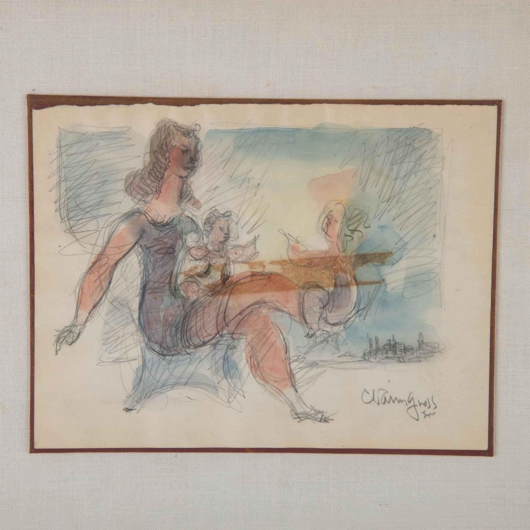 Chaim Gross, Original Watercolor and Pencil on Paper, Signed
