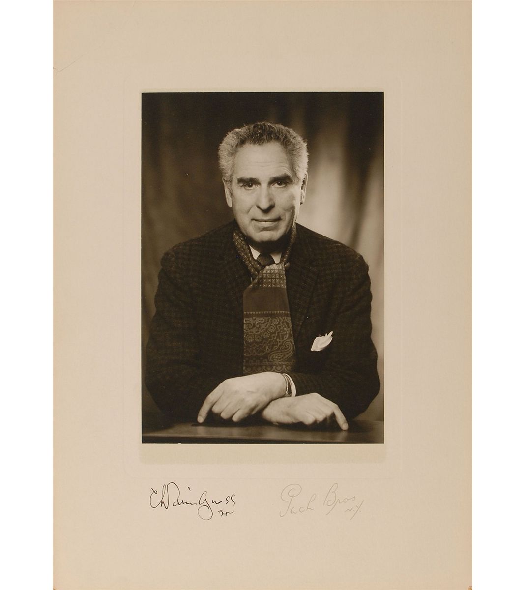 Scarce matte-finish 6.5 x 9.25 portrait of Gross on its original 11 x 15.5 Pach Bros. mount, signed on the mount in black ink, “Chaim Gross.” A heavy crease to the upper left corner of the mount, otherwise fine condition.