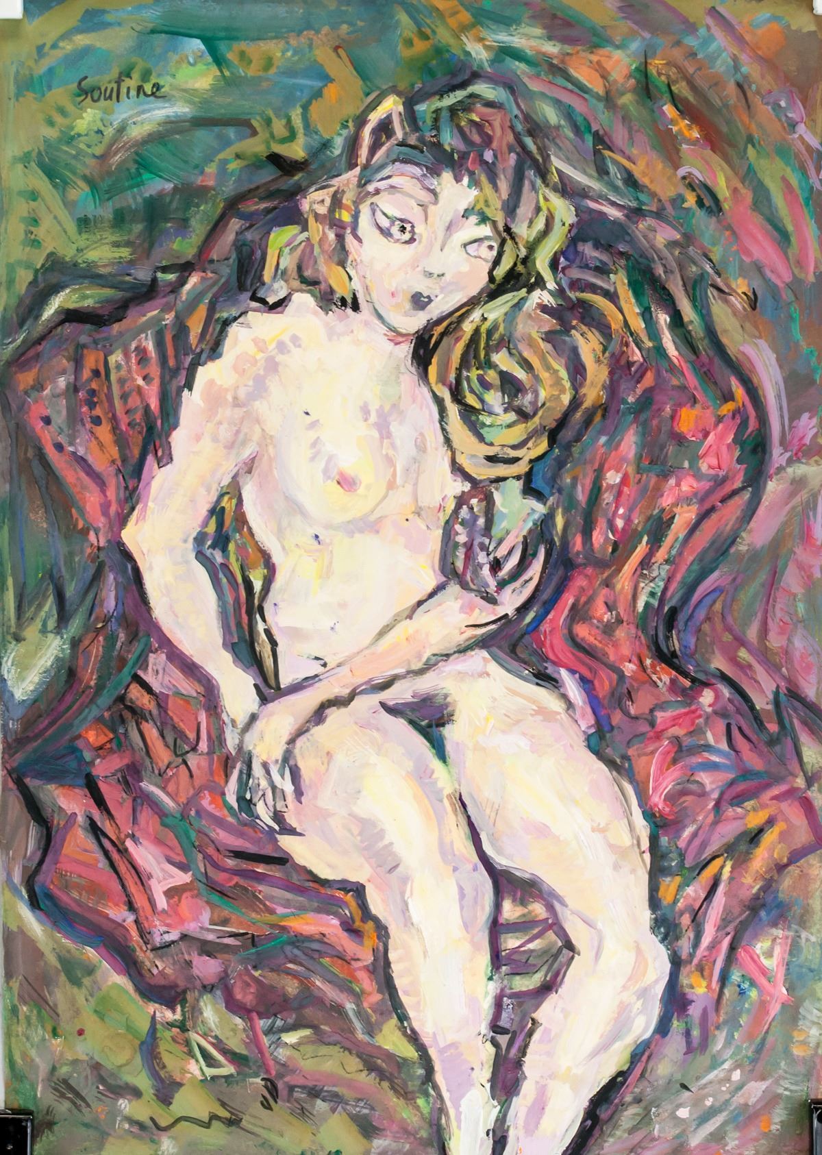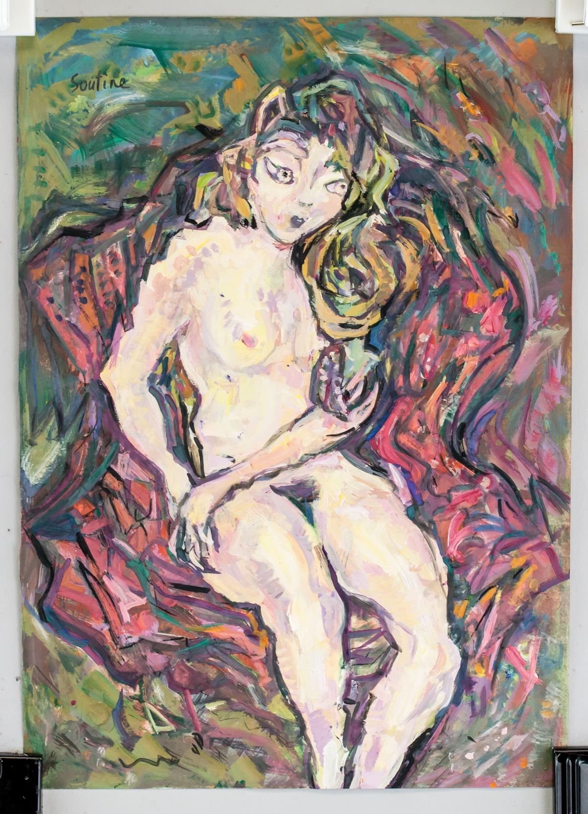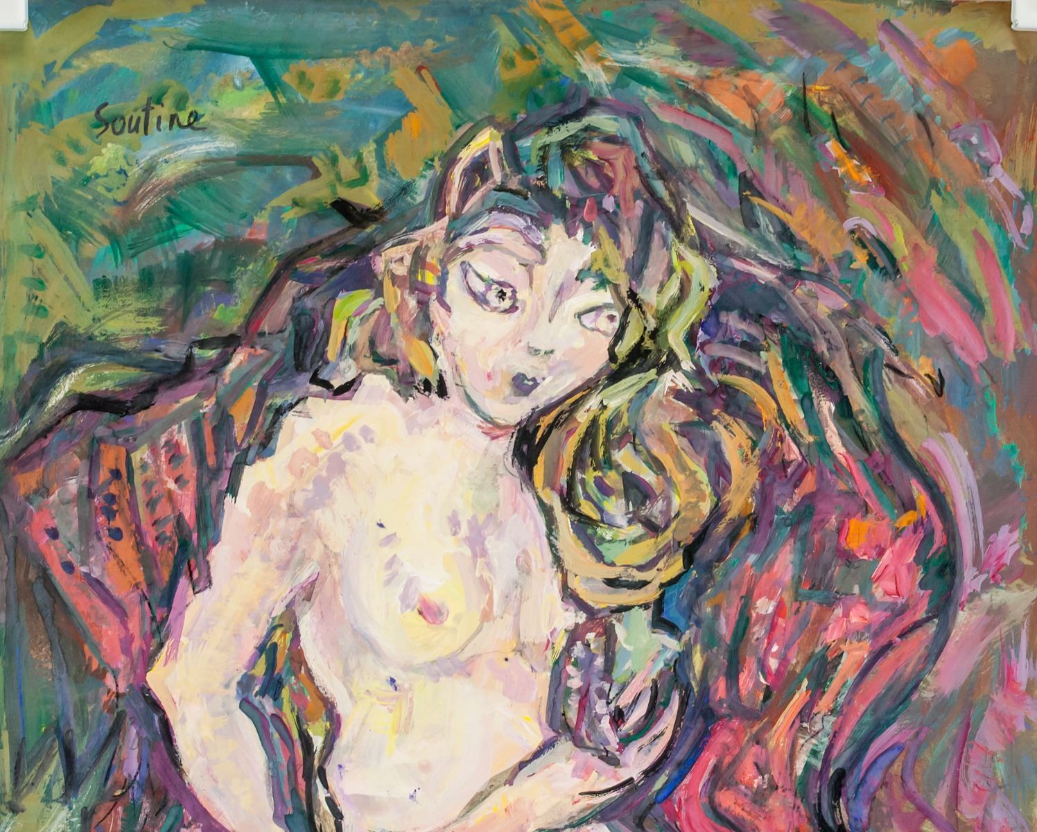 Gouache on paper. Featuring a nude portrait of woman. Signed Soutine on the upper left corner. Attributed to Chaim Soutine (1893-1943, Russian-French). 29.5 x 21 cm (11.6 x 8.3 inches). PROVENANCE: Southern Ontario estate
