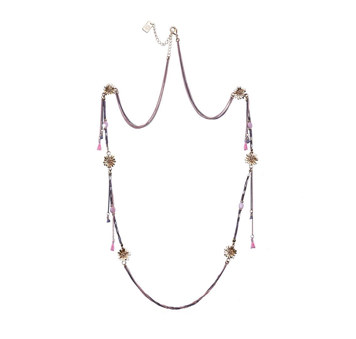 High end designer jewelry. Chain Charm Necklace - Gold Plated. Gold Plated Chain. Rose/ Gold. Long.