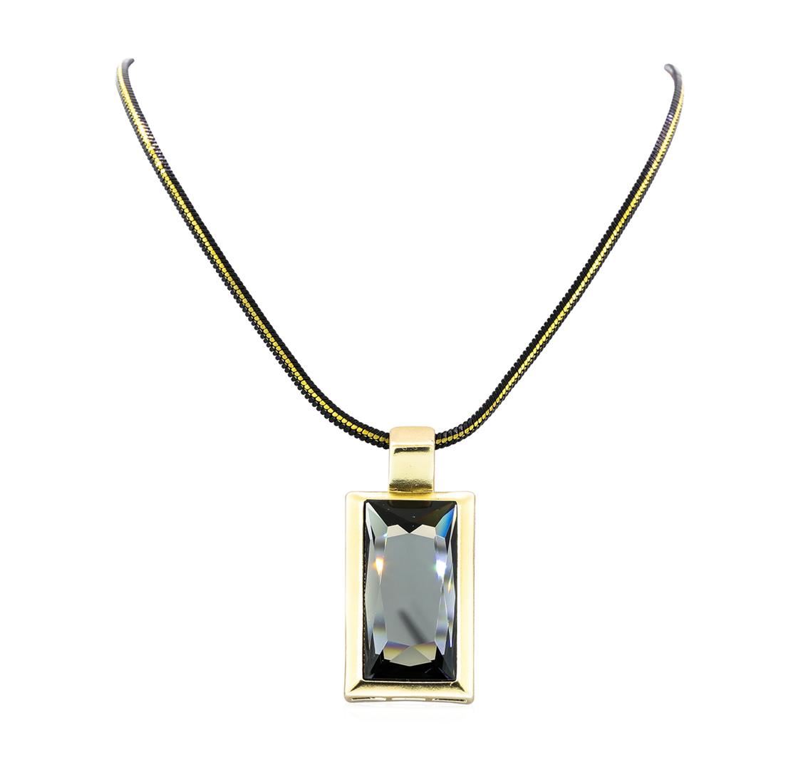 High end designer jewelry. Chain Crystal Necklace - Plated. Blk/ Gld Tone Metal/2.5" Ext Clasp. Gold. 23/1.5inches.