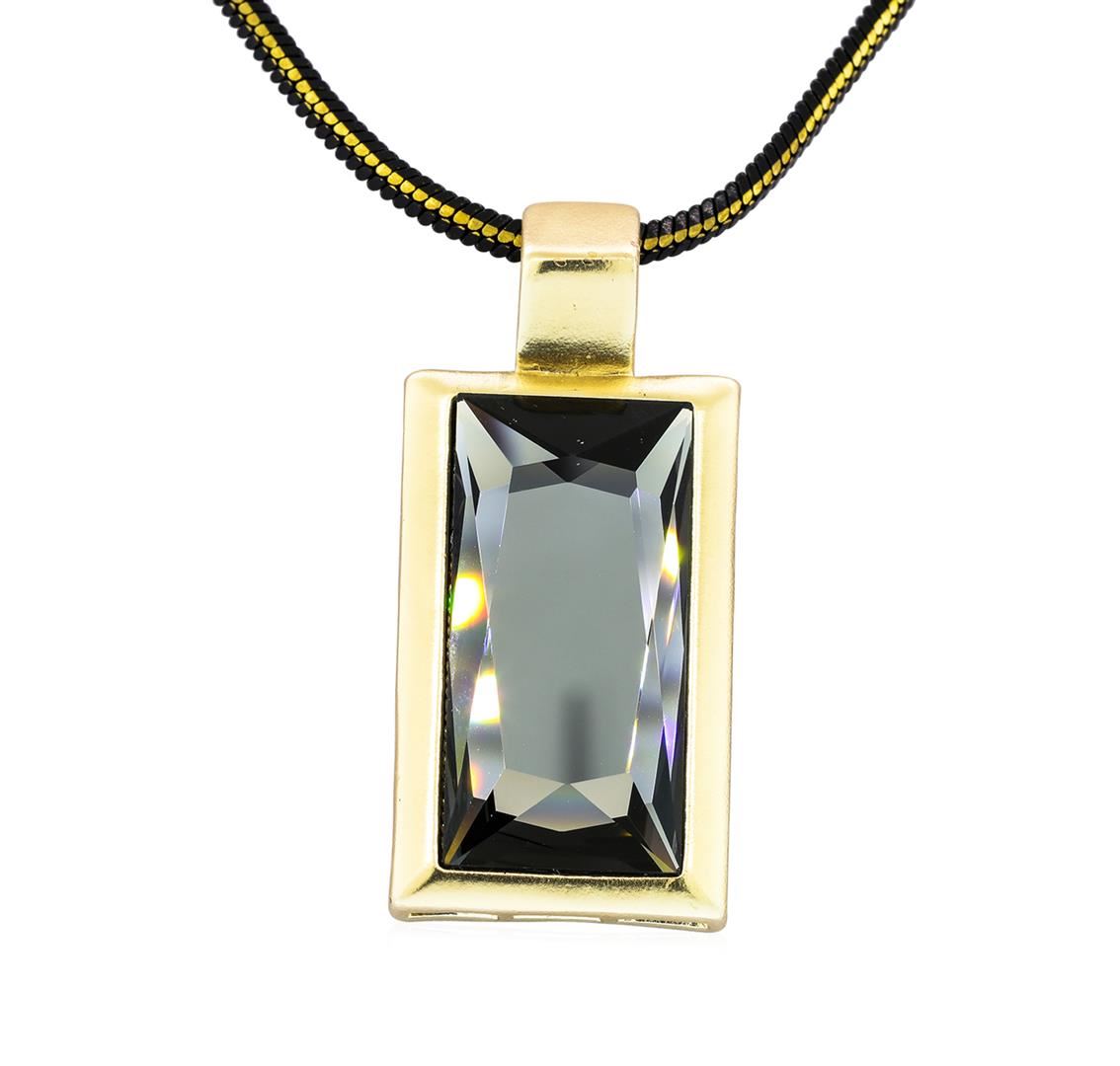 High end designer jewelry. Chain Crystal Necklace - Plated. Blk/ Gld Tone Metal/2.5" Ext Clasp. Gold. 23/1.5inches.