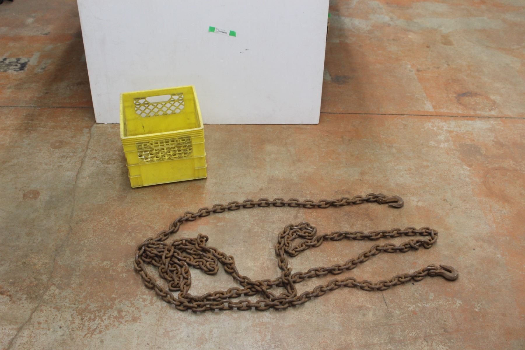 Chain with Hooks - Size Approx a 100' and a Plastic Crate