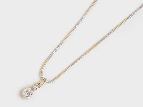 14 K gold, snake chain form, 1 brilliant circa 0.10 ct (R2CrP1) and 1 diamond decoration on the pendant, weight 4.1 g, length: 42 cm, altered.