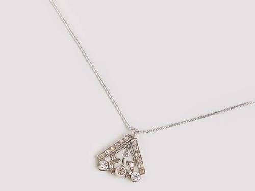 14 K gold and silver, 3 brilliants circa 0.55 ct (R2CrSi) and 17 diamonds circa 0.50 ct on the pendant, altered from an old jewellery, weight 7.5 g, length: 48 cm.
