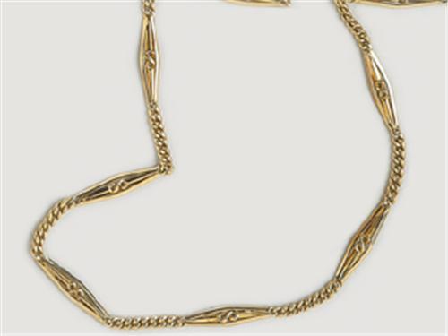 14 K gold, longish lozenge form and flat links, spring hook, circa 1930, marked, length: 49 cm, weight: 22.7 g, in good condition.
