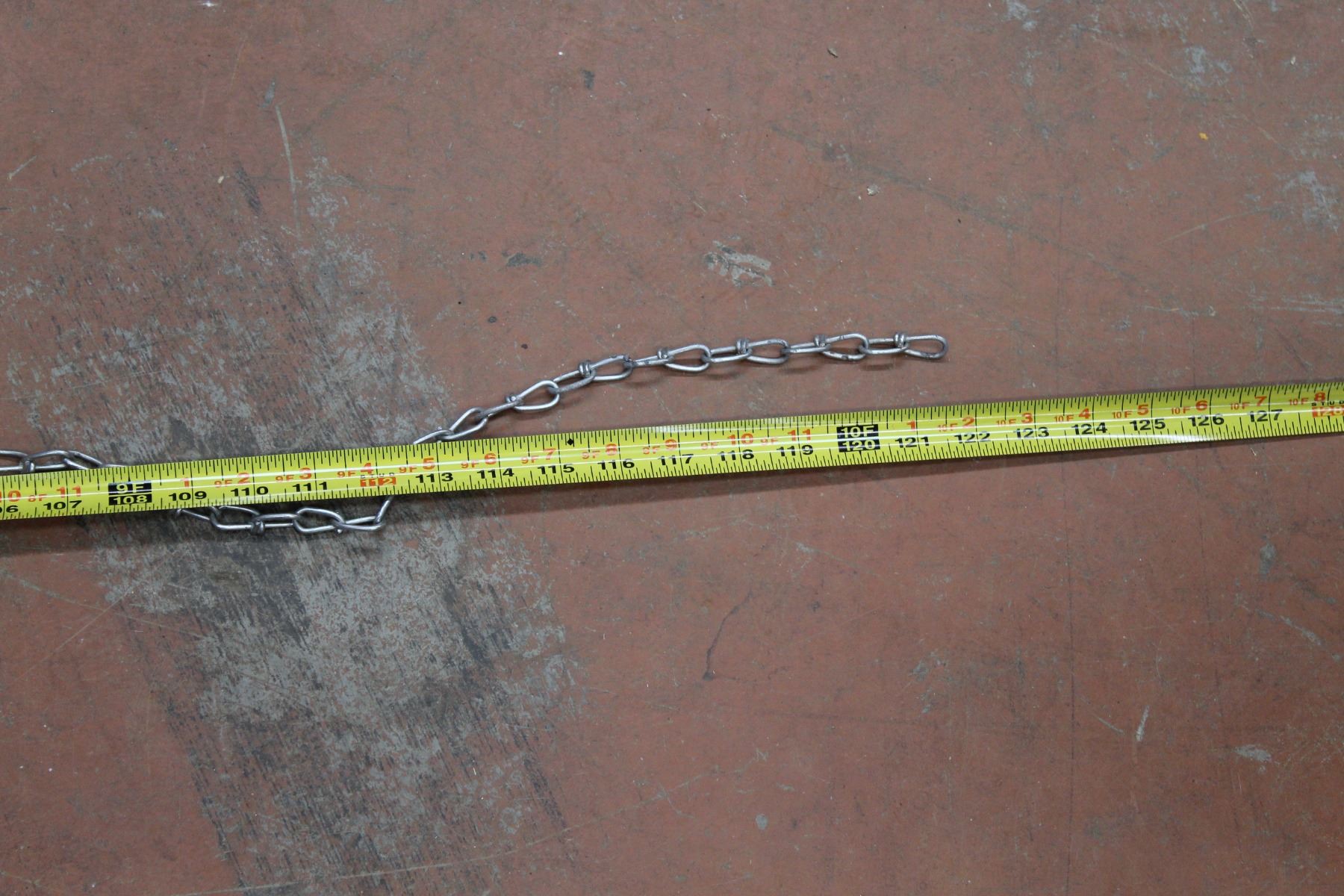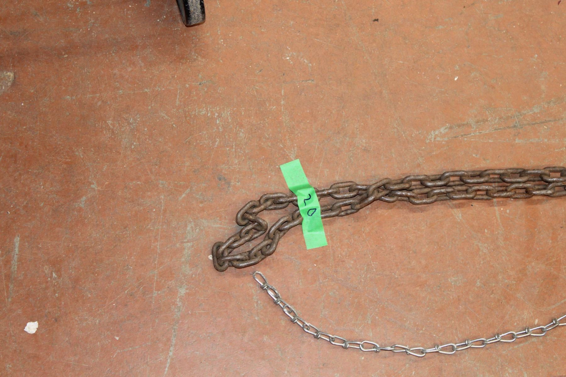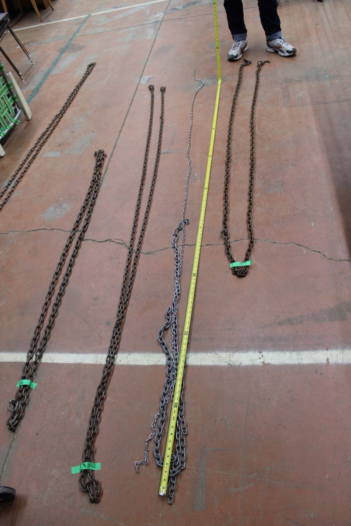 Chains (1) 14', (1) 20' & (3) Small Tail Chains - Various Sizes (As is Condition) w/ Basket
