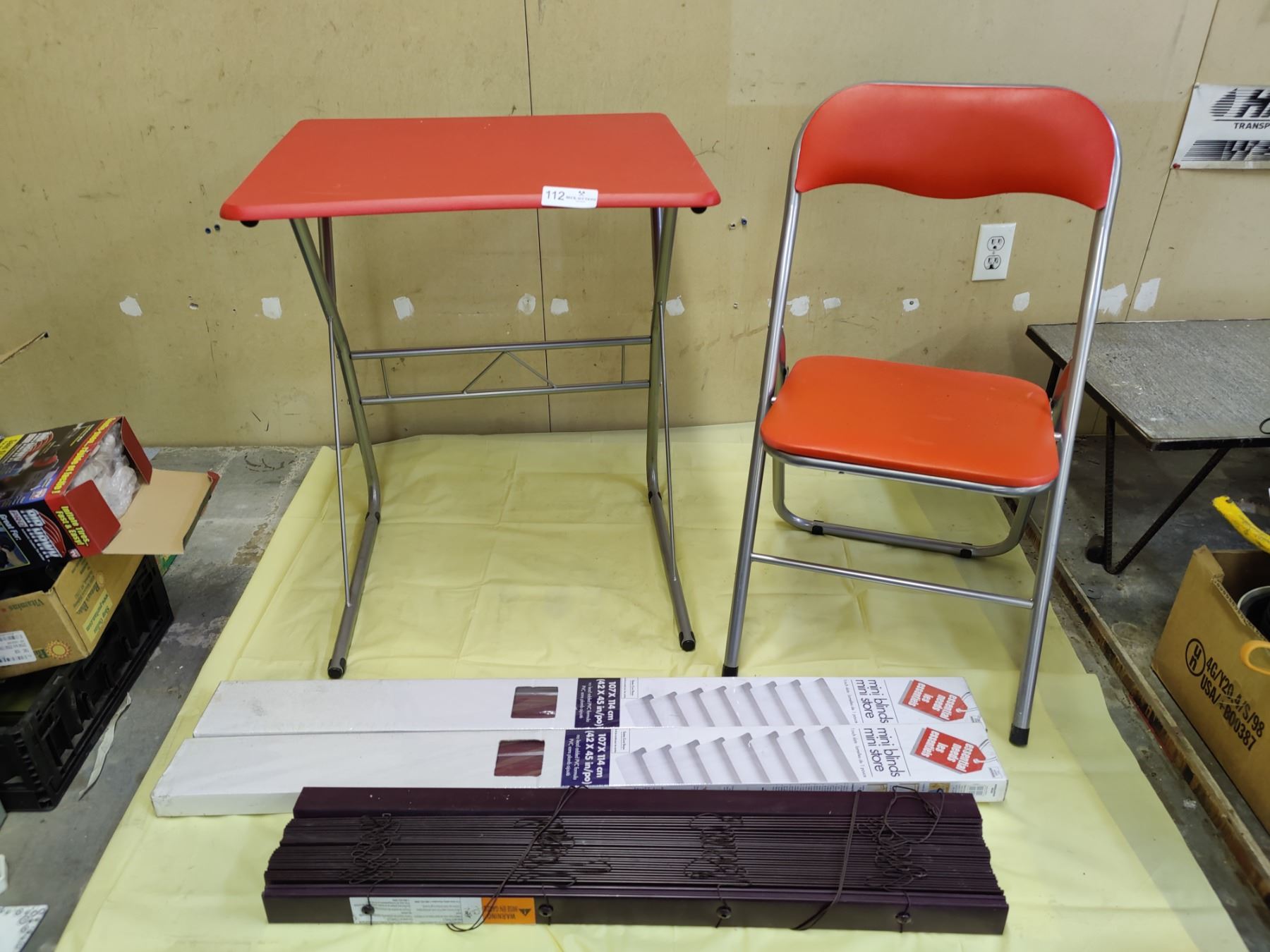 Chair/Desk Combo & Assorted Blinds