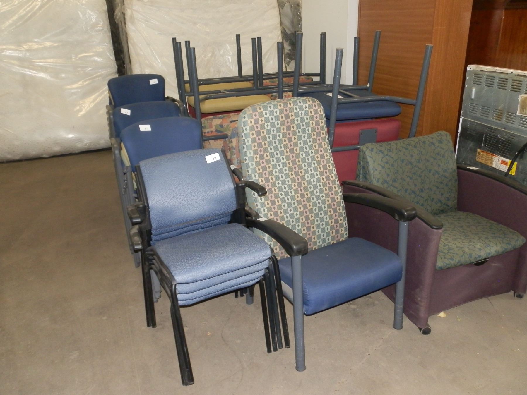 you get lots of chairs in this lot, 22 stacking chairs, 5 2 seater benches, 2 single chairs, and 1 chair that turns into a bed....used