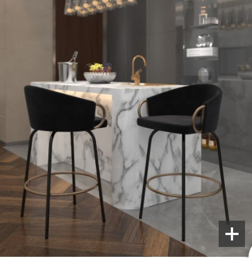 Inspire 26" Counter Stool 2 Piece Set, Swivel Chairs Navy Blue Velvet Material, Shelf Pull, New Condition, Color Not Identical To Picture