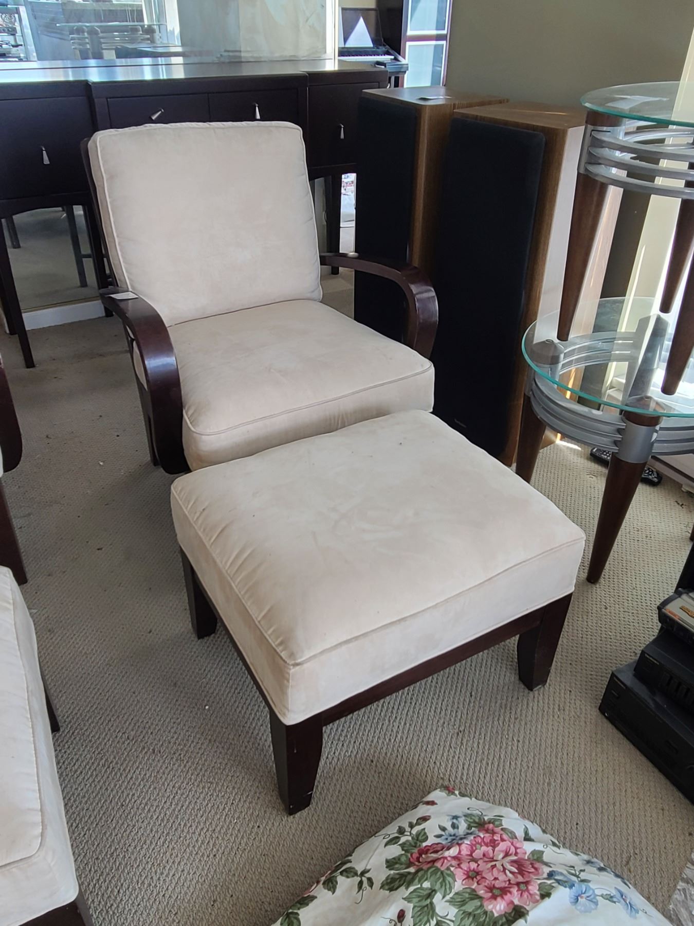 Micro-suede chair 31x31x38 with ottoman. Note there is staining needs cleaning. Bring help to move. Pickup 11-12pm.