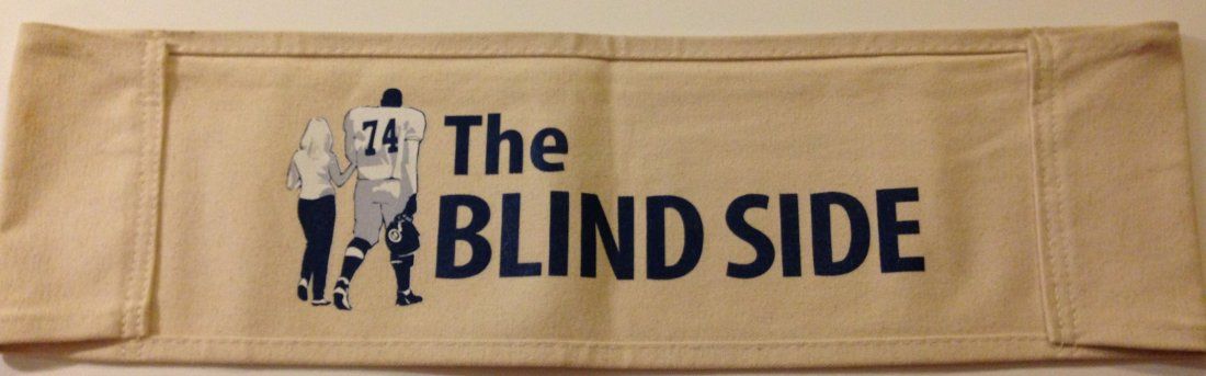 From the hit 2009 film The Blind Side comes a white canvas with blue and white chair back with "The Blind Side Logo" and blue "Guest" written on the back. It is approximately 23" long.
