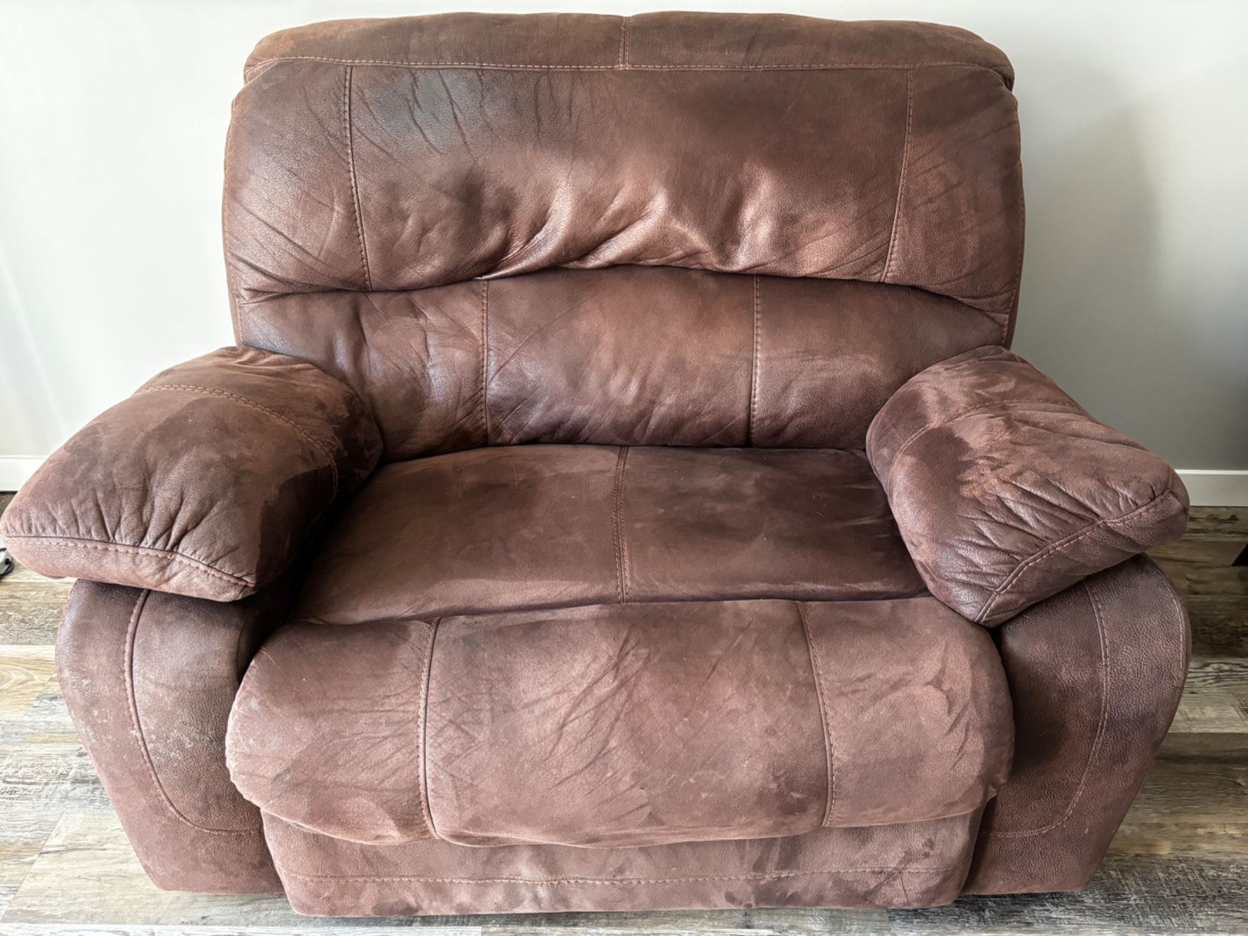 Has some stains on the seats, 52"L x 36"W x 40"H