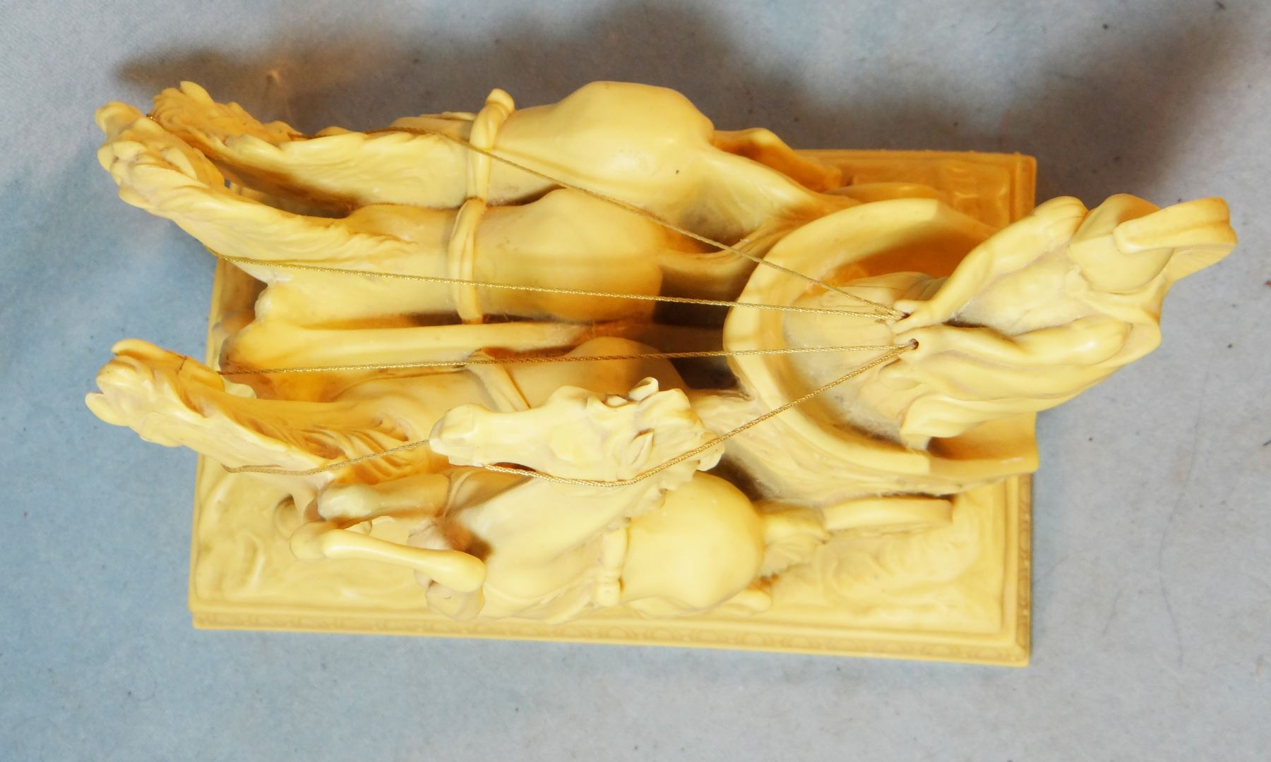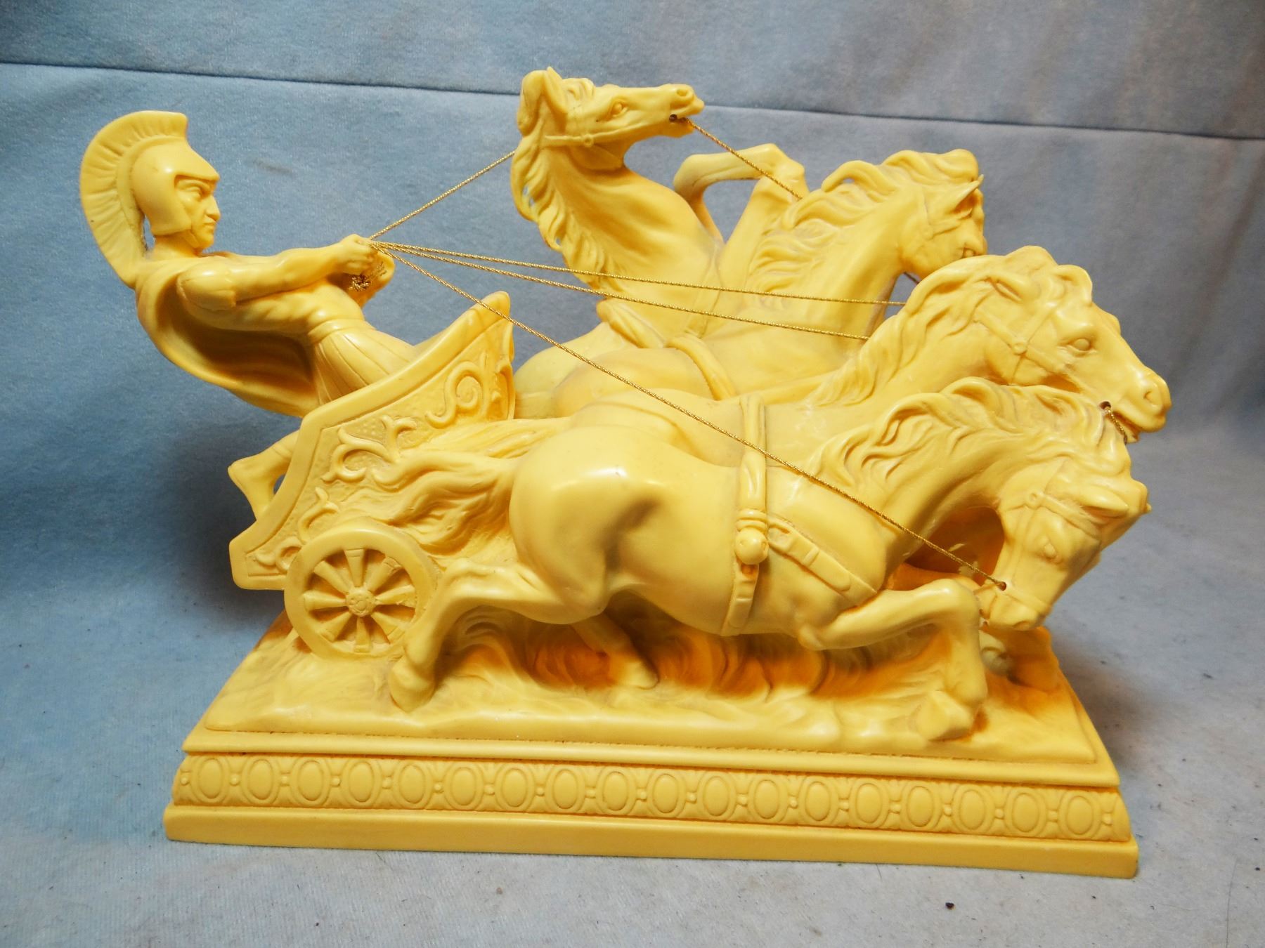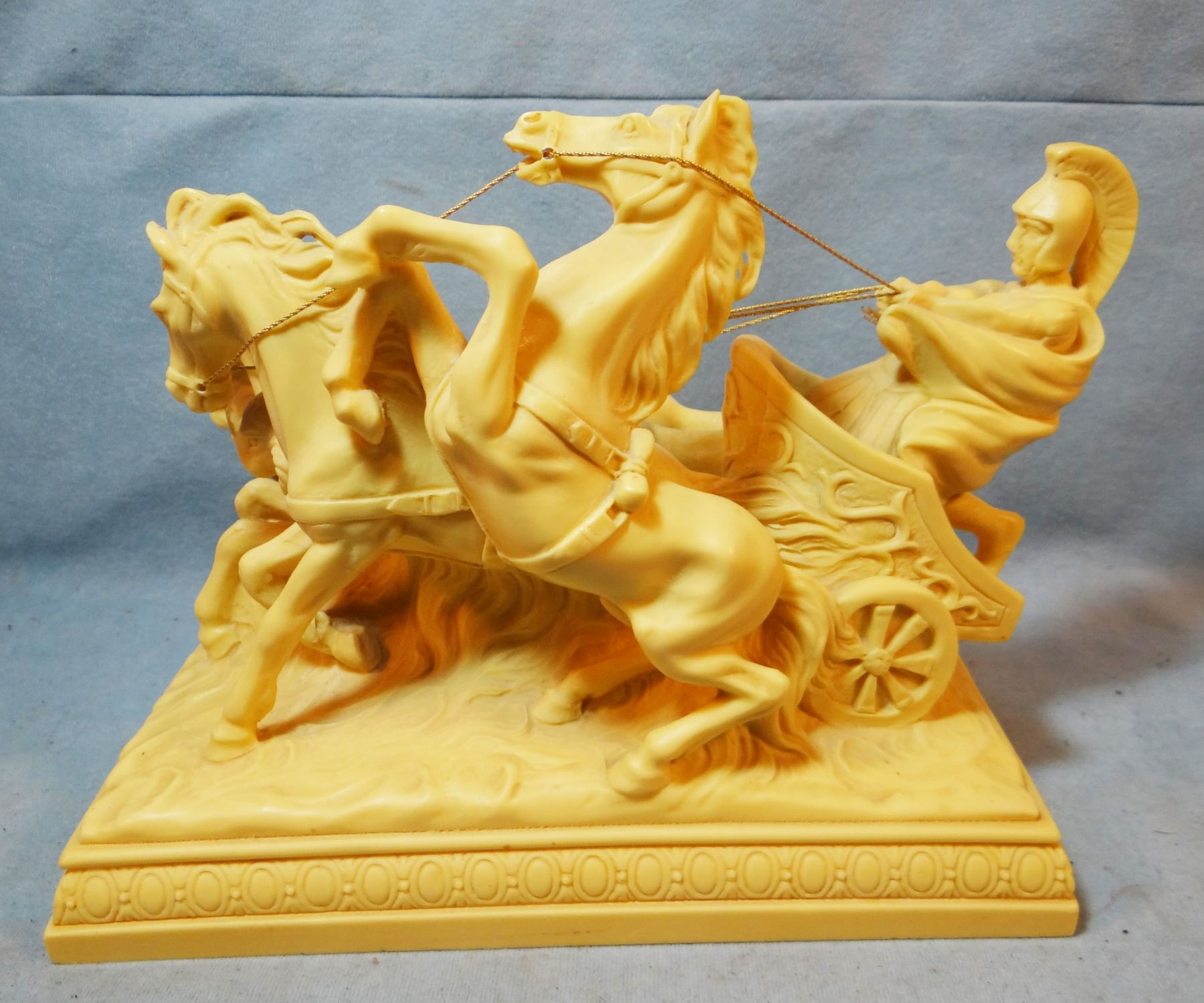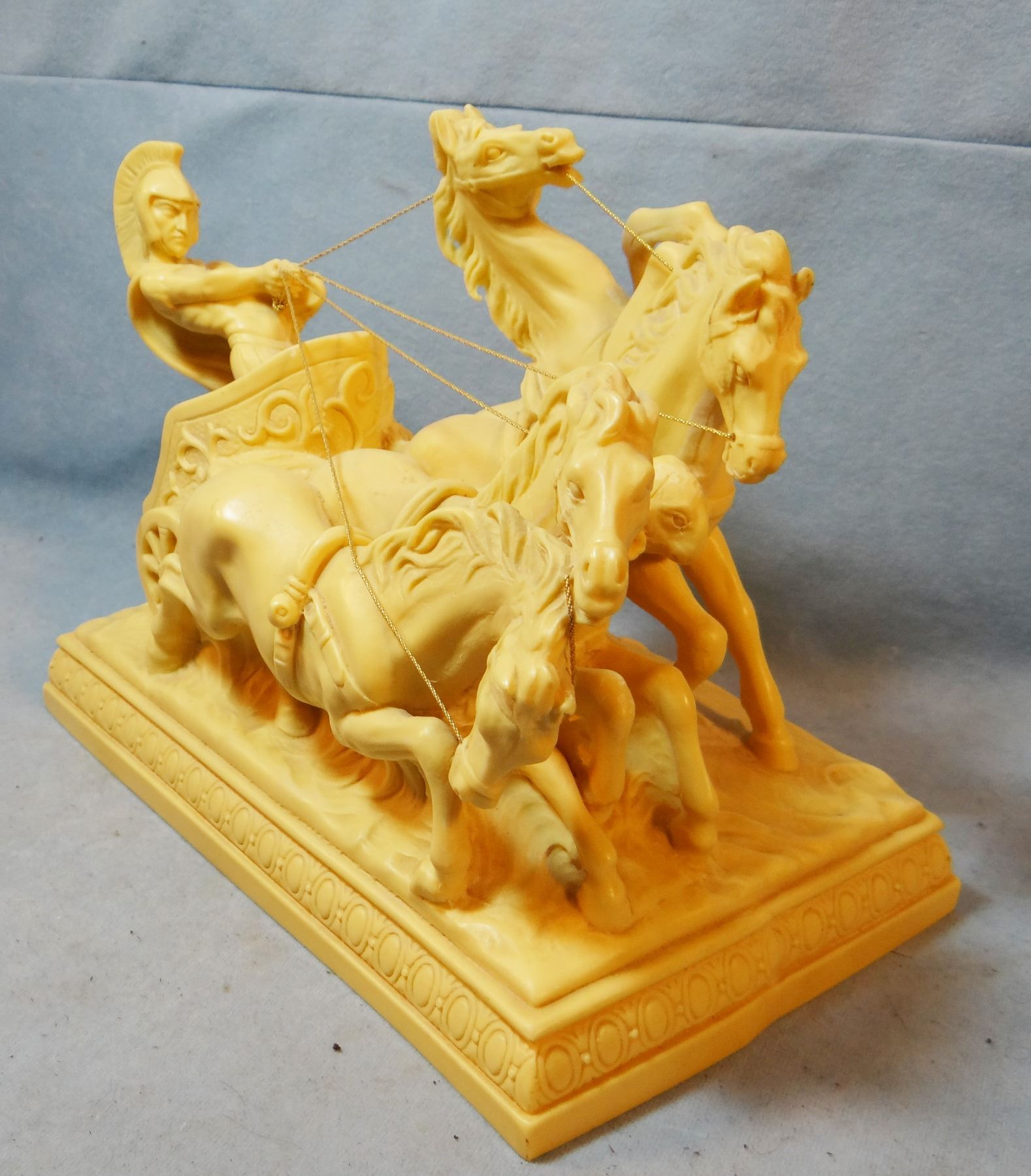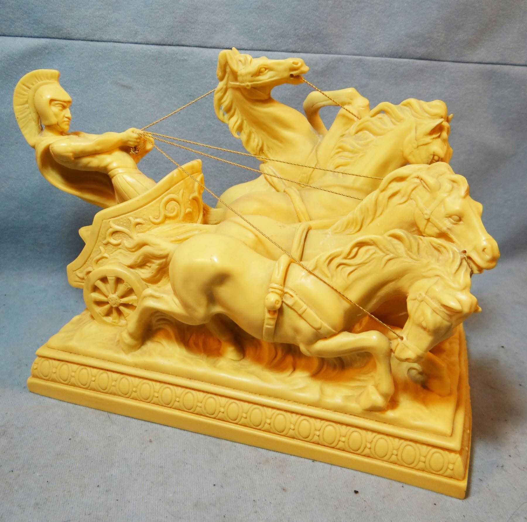 Chairiot rider w/4 horse hitch scuplture, composition, 8" h x 10" w x 6" deep, unmarked
