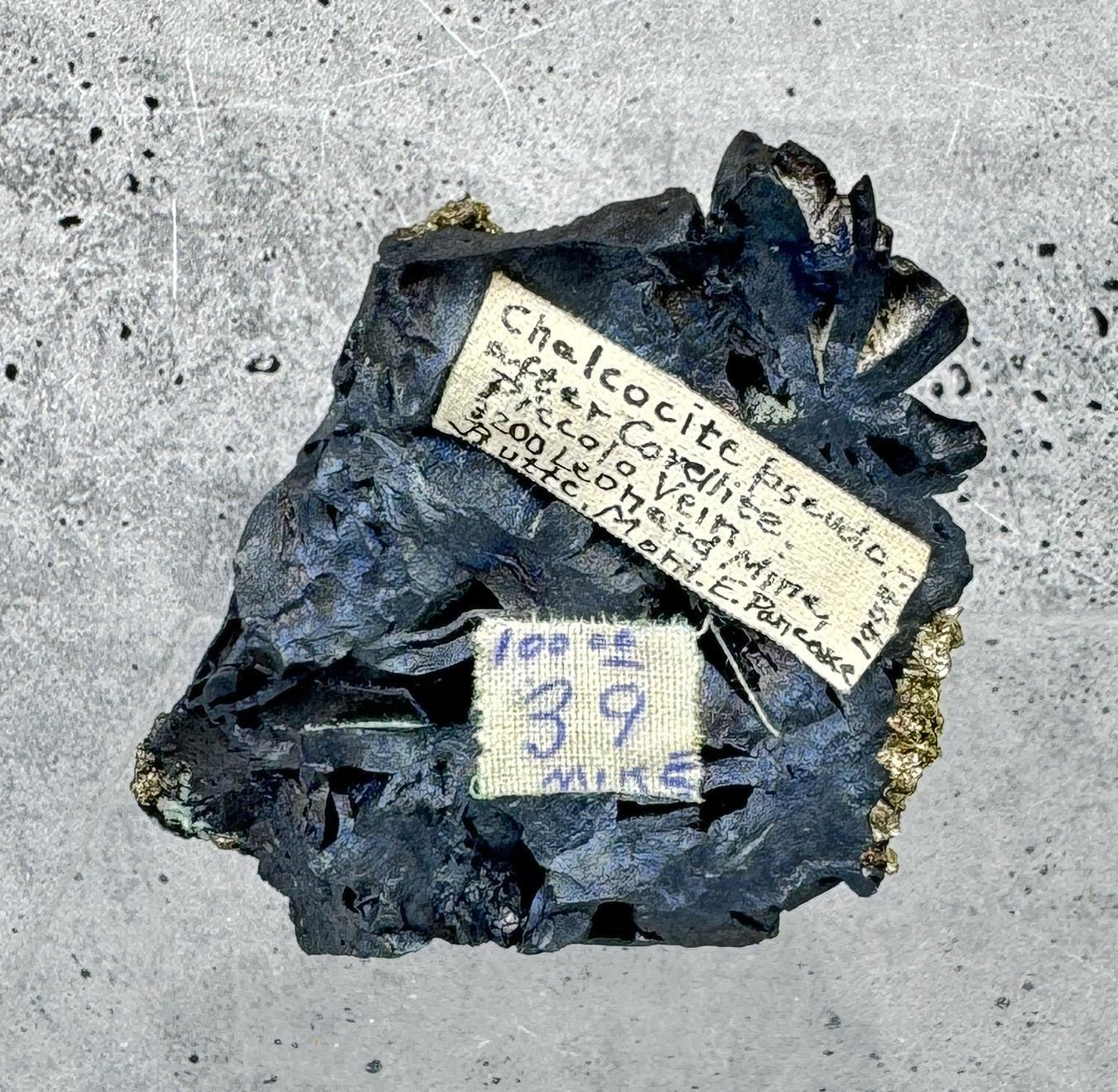 Piccolo Vein Leonard Mine. Obtained in 1944. 2 5/8" by 2 3/8" by 1 3/4". 199.95 grams. Provenance: From the Estate of Kitty's Copper Shop Butte Montana.