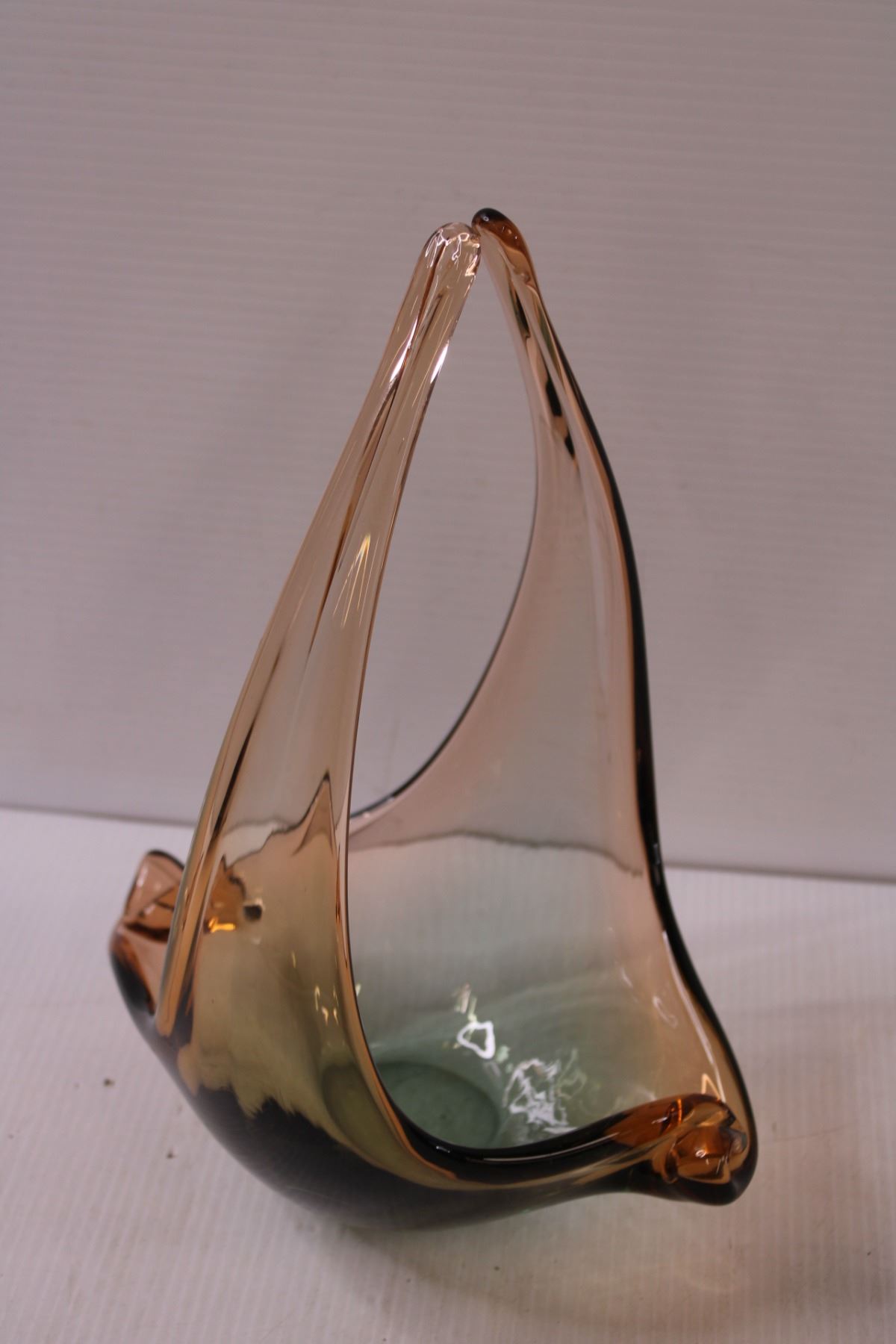 Chalet Style Peach & Green Art Glass - 13" Tall