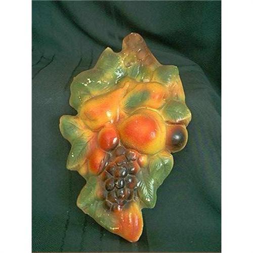 Nice old chalkware plaque with peaches and grapes. The chalk ware plaque measures 11.75 inches high and 7.5 inches wide. This chalk ware plaque of fruit is in very good condition for the age. There are a few tiny paint chips.