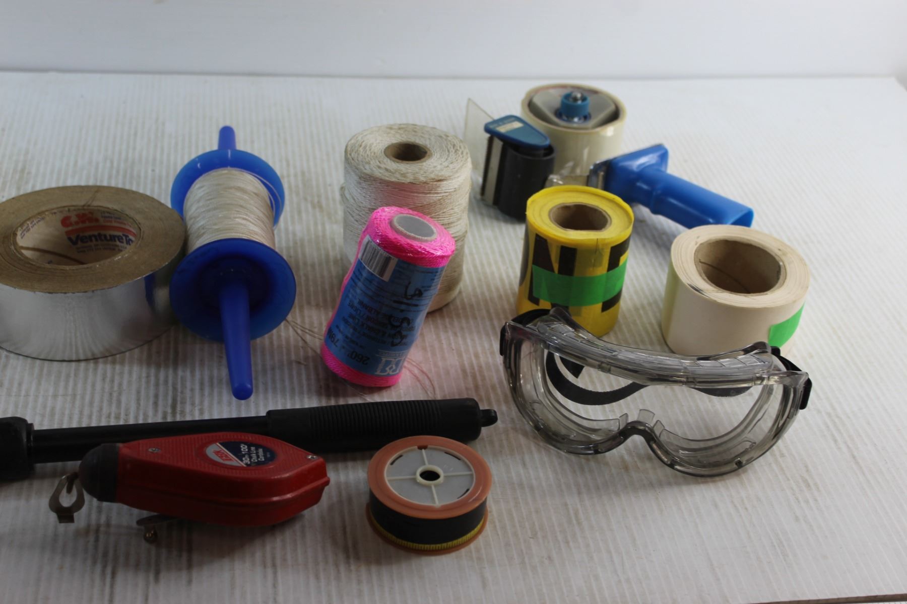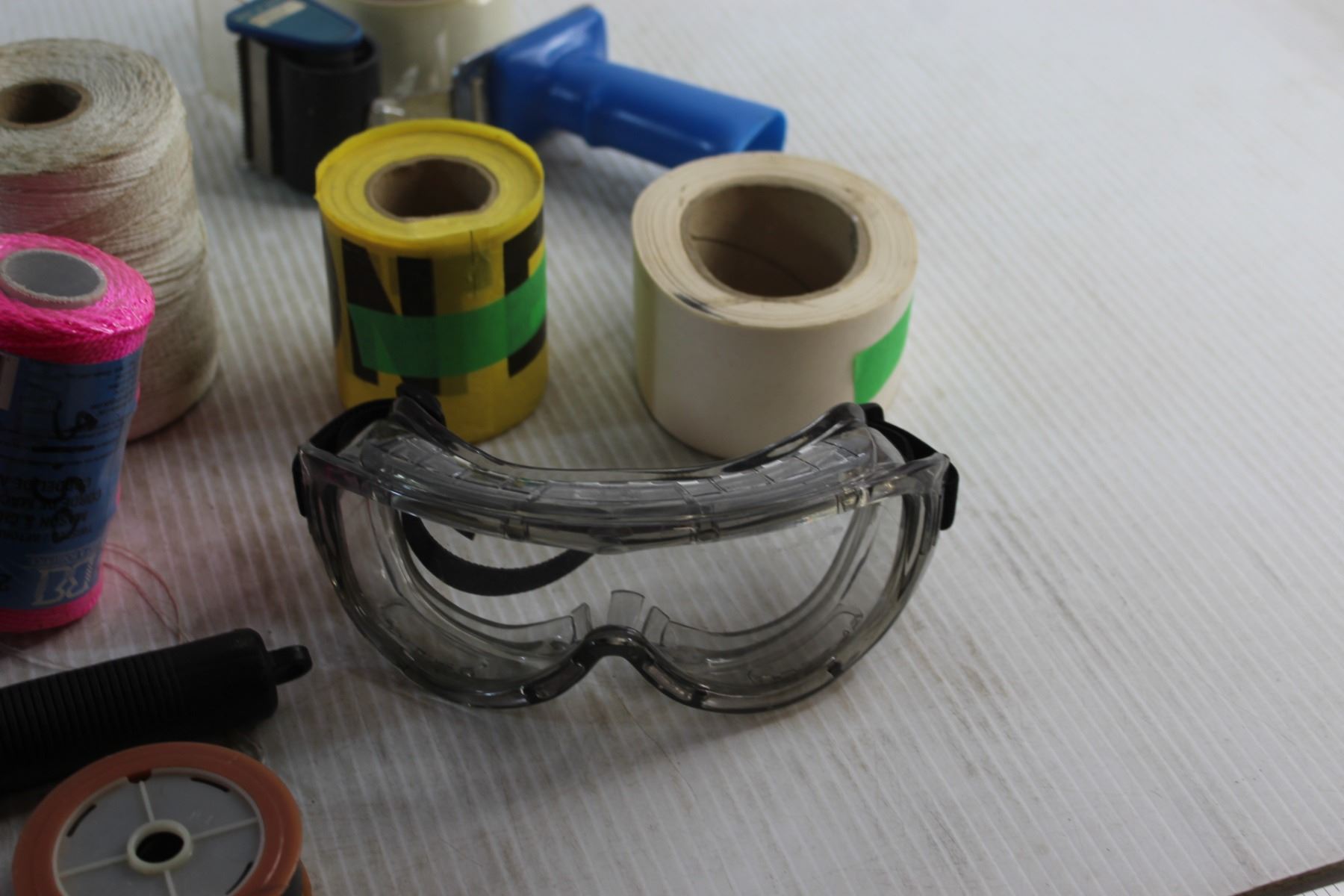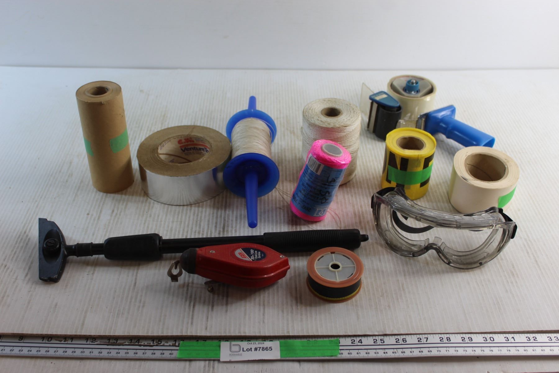 Chalk line, Scraper, Goggles, Tape Gun and Assorted Items