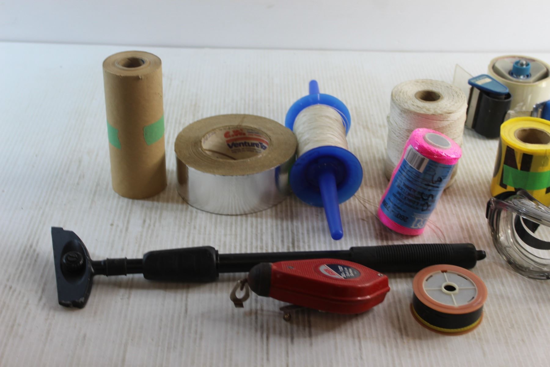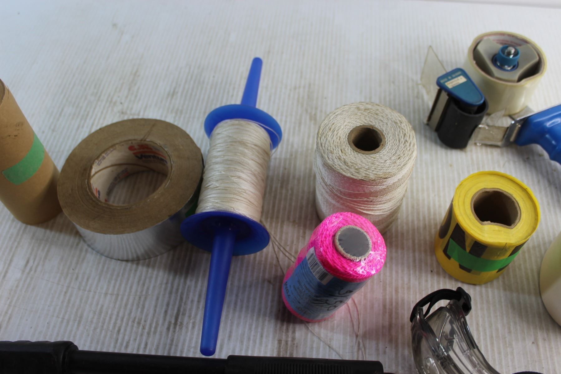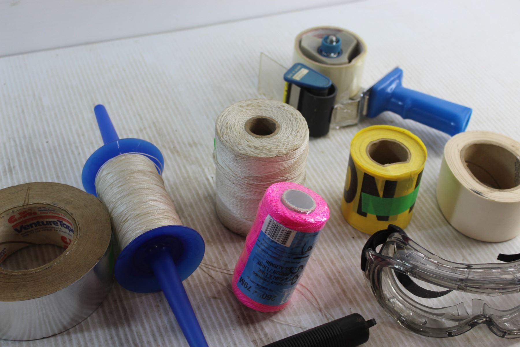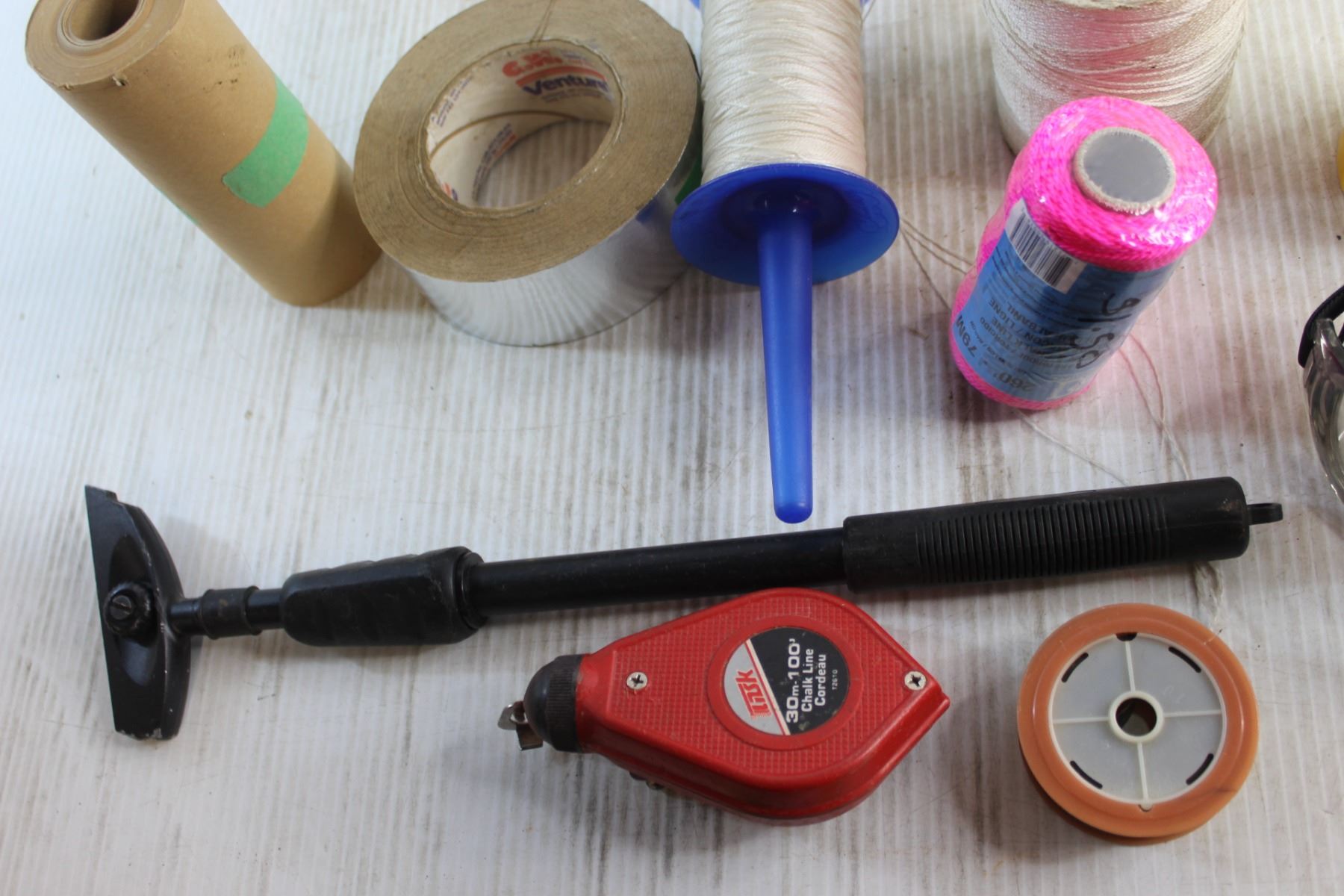 Chalk line, Scraper, Goggles, Tape Gun and Assorted Items