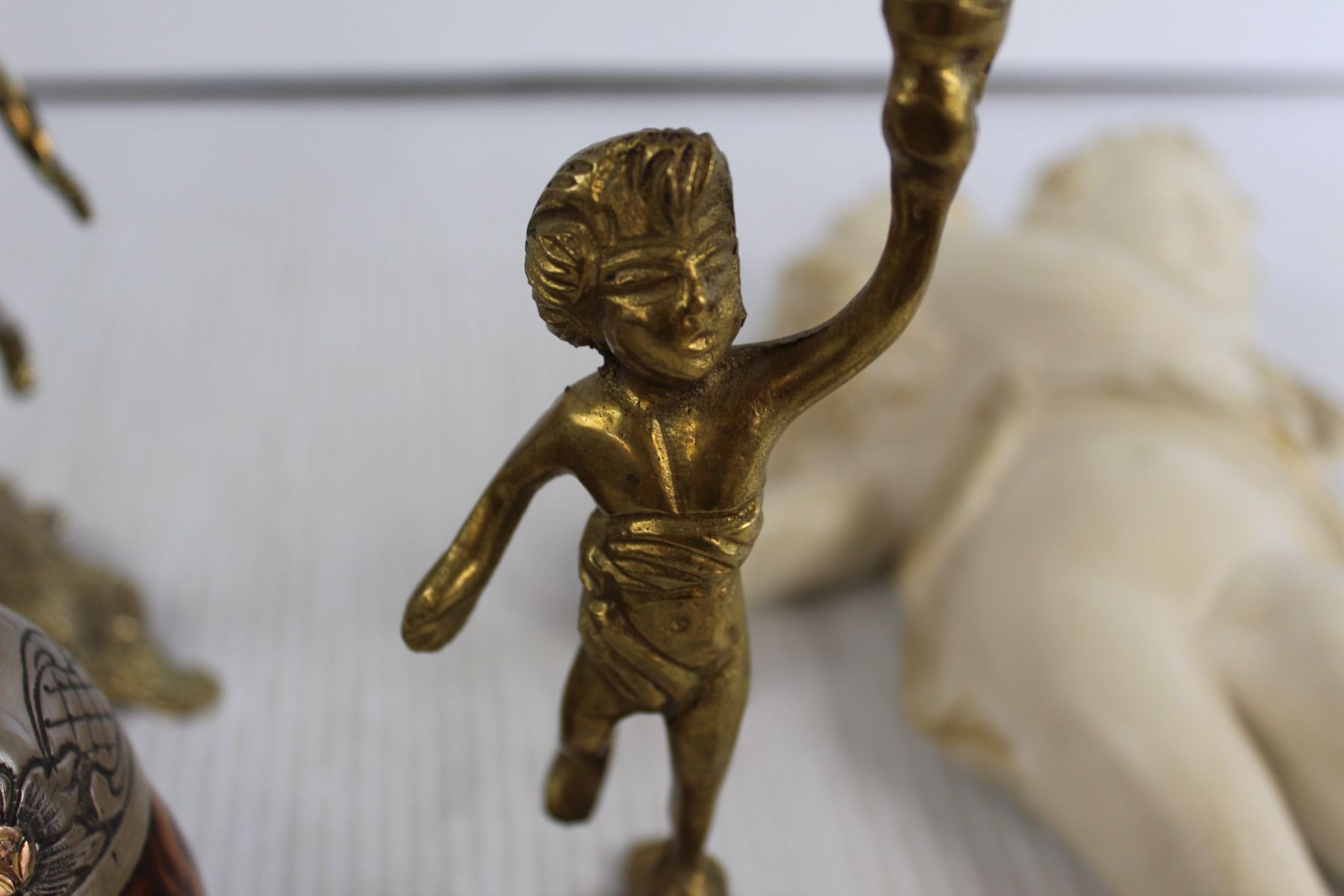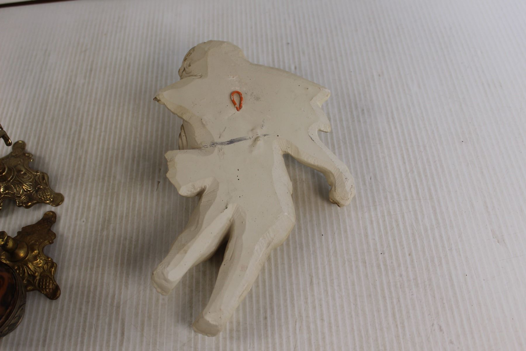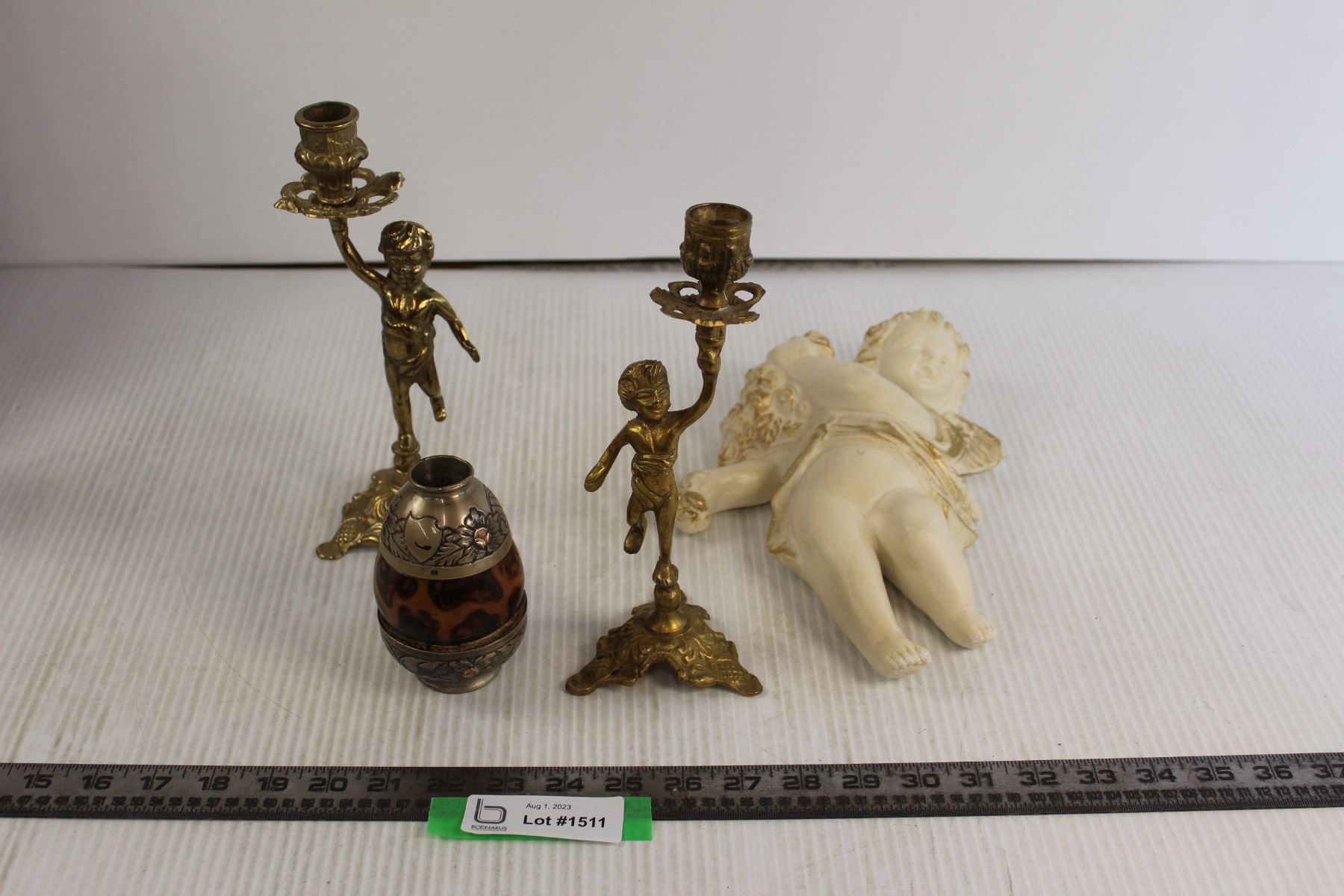 Chalkware Cherub, Mini Vase, (2) Brass Cherub Candlesticks