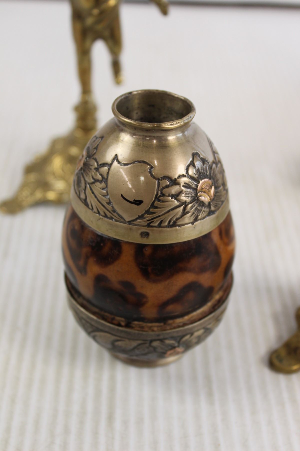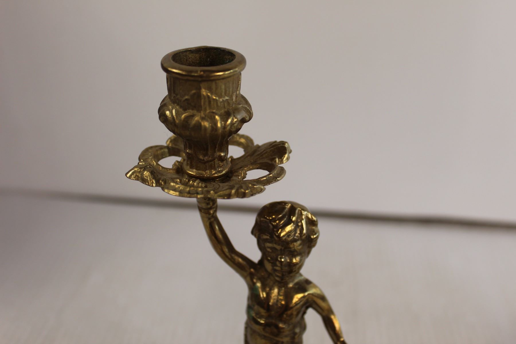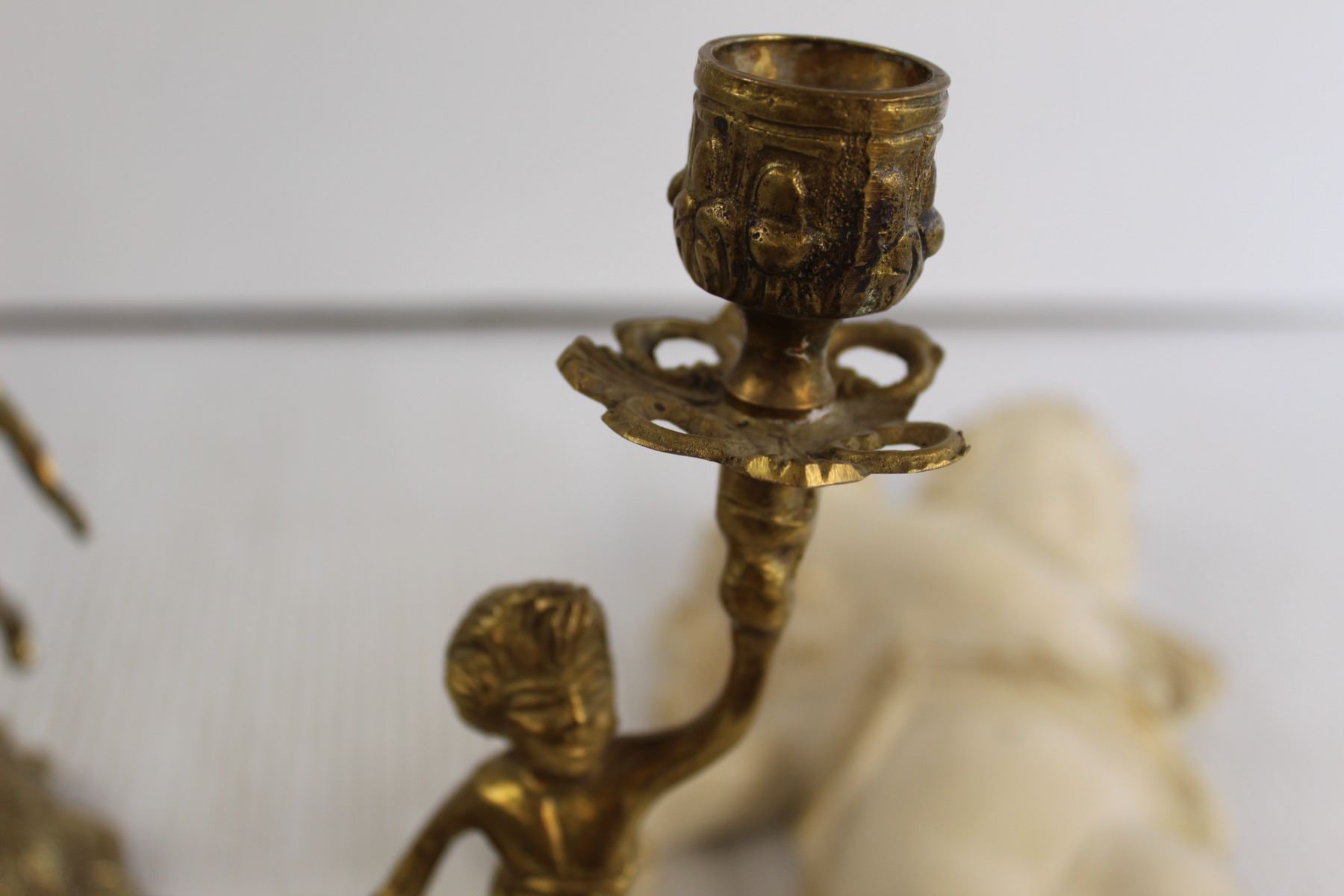 Chalkware Cherub, Mini Vase, (2) Brass Cherub Candlesticks