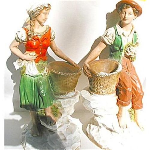 Universal chalkware set of a man and woman as Italian peasants or grape gatherers perhaps. Great for the Tuscan kitchen so popular today.