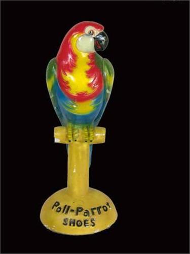 Chalkware Poll-Parrott Shoes store display, some minor paint ships, otherwise excellent condition, 16 inches tall.