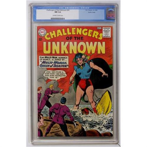 <B>Challengers of the Unknown #34 Pacific Coast pedigree (DC, 1963) CGC NM 9.4 Off-white to white pages.</B></I> Bob Brown art. Overstreet 2007 NM- 9.2 value = $75. CGC census 6/07: 1 in 9.4, none higher. <I>From the Keith Marlow Collection.</B></I><BR><BR><b>Shipping:</b> Comics - Slabbed (certified) (<a target="_blank" href="http://www.heritageauctions.com/common/shipping.php">view shipping information</a>)