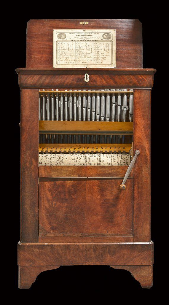 Fine French chamber organ with 3 stops and interchangeable barrels. Original tune sheet. 3 barrels playing 10 airs each. With 3 ranks of wood and tin pipes. Museum's quality. 67,5 x 41,5 x 103,5cm. Husson-Buthod & Thiboville, France, circa 1795.