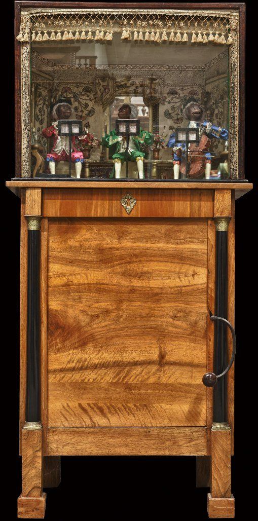 Salonorgel mit Automatenaufsatz Französische Walzensalonorgel mit 3 Register, 60 Pfeifen und «Affenautomat». Museumsqualität. 49,5 x 32,5 x 138cm. Phalibois, Paris, France, circa 1870.