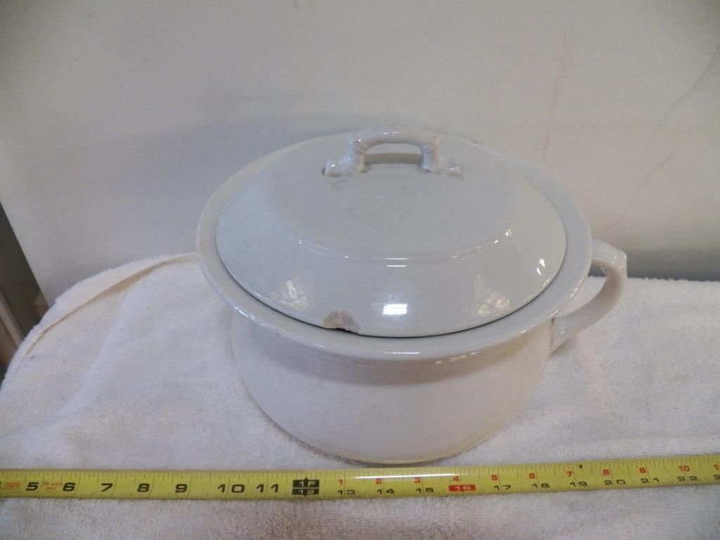 Antique Porcelain Chamber Pot with Lid. (Lid  has chip and may not belong to this pot)