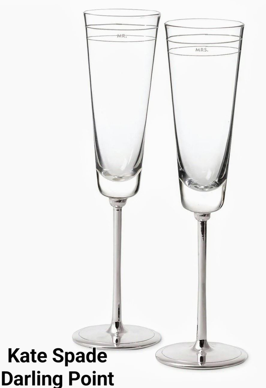Elegant toasting glasses with "Mr." and "Mrs." engraving, perfect for celebrations, new.