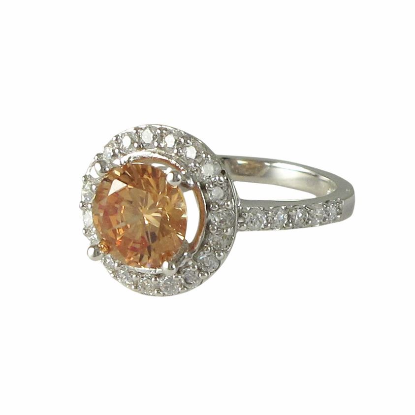 Champagne Round CZ, Surrounded With White Czs, Sterling Silver Ring Size 8