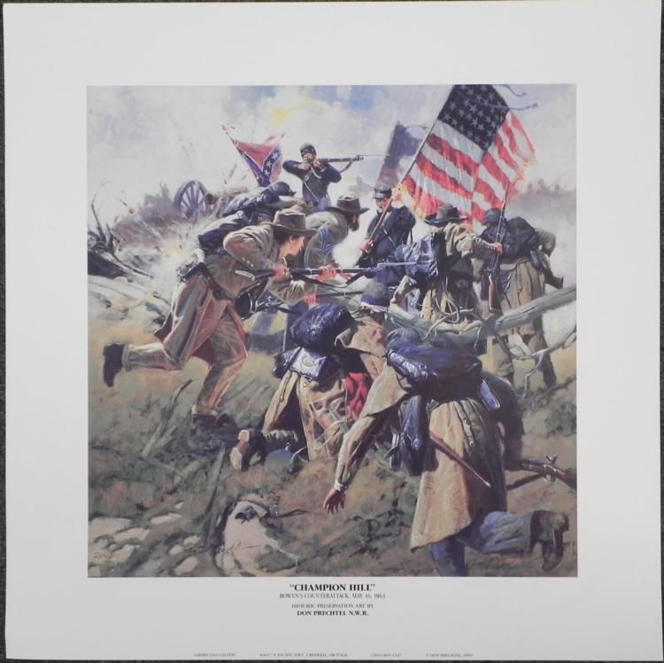 Champion Hill Don Prechtel N.W.R. Title: "Champion Hill"Artist: Don Prechtel Published by Americana Gallery Year Printed: 1990 Sheet size: 20" x 20" Signed by the artist in pencil Numbered: 21/400 in a limited edition Condition: Very