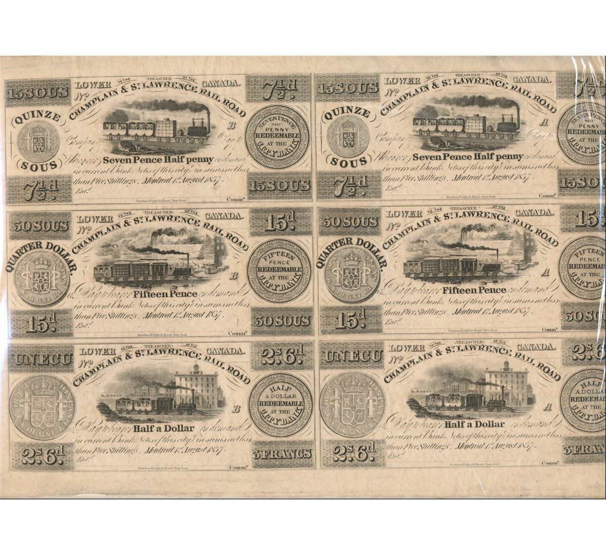 Champlain & St. Lawrence Rail Road; 1837 uncut remainder sheet.