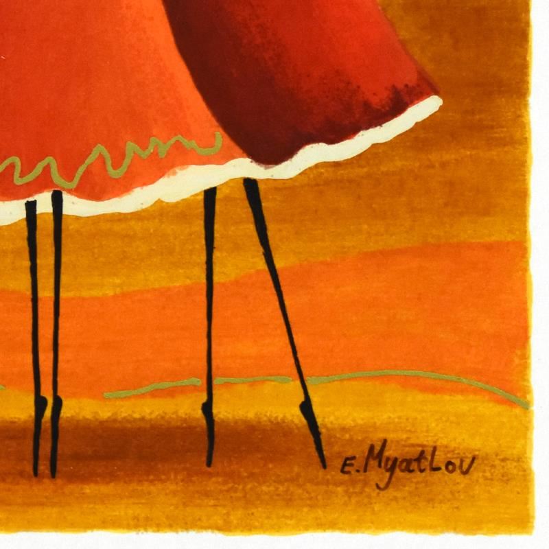 "Chance Meeting" is a limited edition serigraph on paper by Ester Myatlov, numbered and hand signed by the artist. Includes Letter of Authenticity. Measures approx. 6.5" x 8.5" (border), 6" x 8" (image).